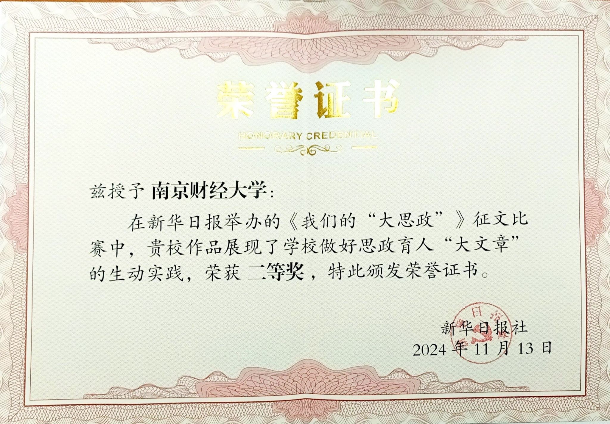 11月13日,省教育厅、省委教育工委联合新华日报社共同举办“用好党报党媒、助力学校发展”座谈会。会上举行了新华日报社《我们的“大思政”》征文比赛获奖作品和高校党报发行先进单位颁奖仪式。beat365作品《beat365英国官方网站:让爱国情怀融入青春血脉》(作者:施卫娟)在《我们的“大思政”》征文比赛中获二等奖。同时,beat365获评新华日报社高校党报发行先进单位。