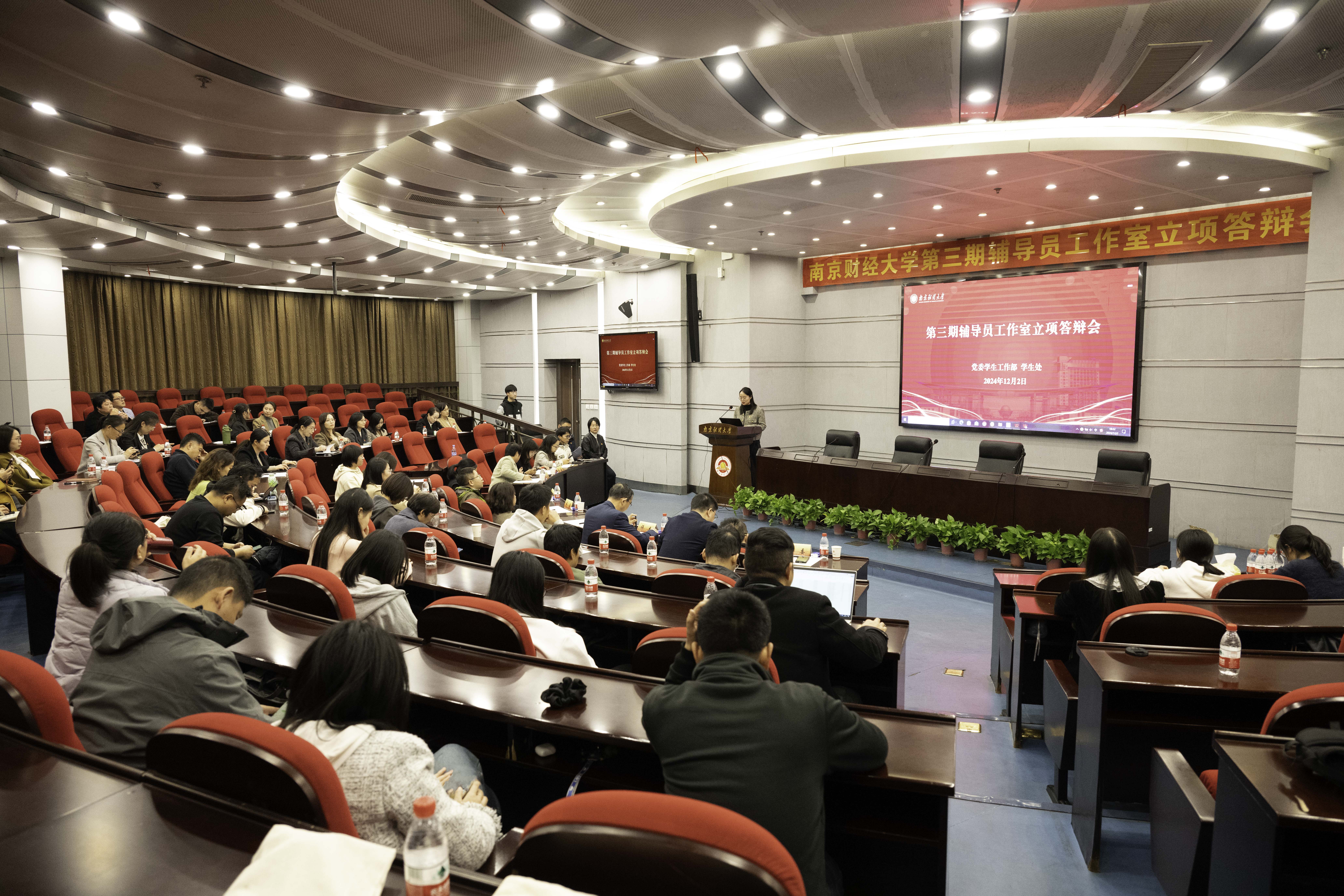 为持续加强辅导员队伍职业化、专业化、专家化建设,12月2日,党委学生工作部在仙林校区行政楼二楼报告厅举办第三期辅导员工作室立项答辩会。南京航空航天大学党委学生工作部部长、学生处处长王静,中国药科大学学生工作处(部)、研究生工作部部长杜文清,南京农业大学学生工作部(处)部长熊富强,南京师范大学学生工作处处长兼党委学生工作部部长景飞,南京医科大学本研学生工作部常务副部长、学生处处长林炜,南京艺术学院党委学生工作部部长仲社,南京邮电大学外国语学院党委副书记、副院长、江苏省首批高校辅导员名师工作室主持人高艳丽,beat365党委学生工作部部长、学生处处长韩力争担任评委。学生处思政科和各学院辅导员、工作室成员等到场观摩学习。答辩会由国际经贸学院辅导员邓盛佳主持。