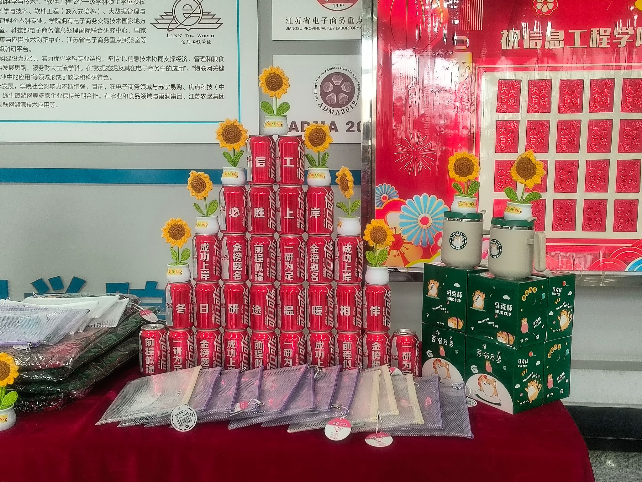 信息工程学院领导老师为考研学子送上祝福,希望同学们保持最佳状态,坚持不懈,金榜题名,一举夺魁。学院为同学们精心准备了“考研加油包”,考试专用文具袋、爱心小卡片、印着“金榜题名”“前程似锦”等祝福语的可乐等,承载着满满的心意与祝福。现场还设置了抽红包环节,马克杯兑换券、围巾兑换券等传递着温暖与力量,激励同学们向着梦想的目标勇敢迈进。