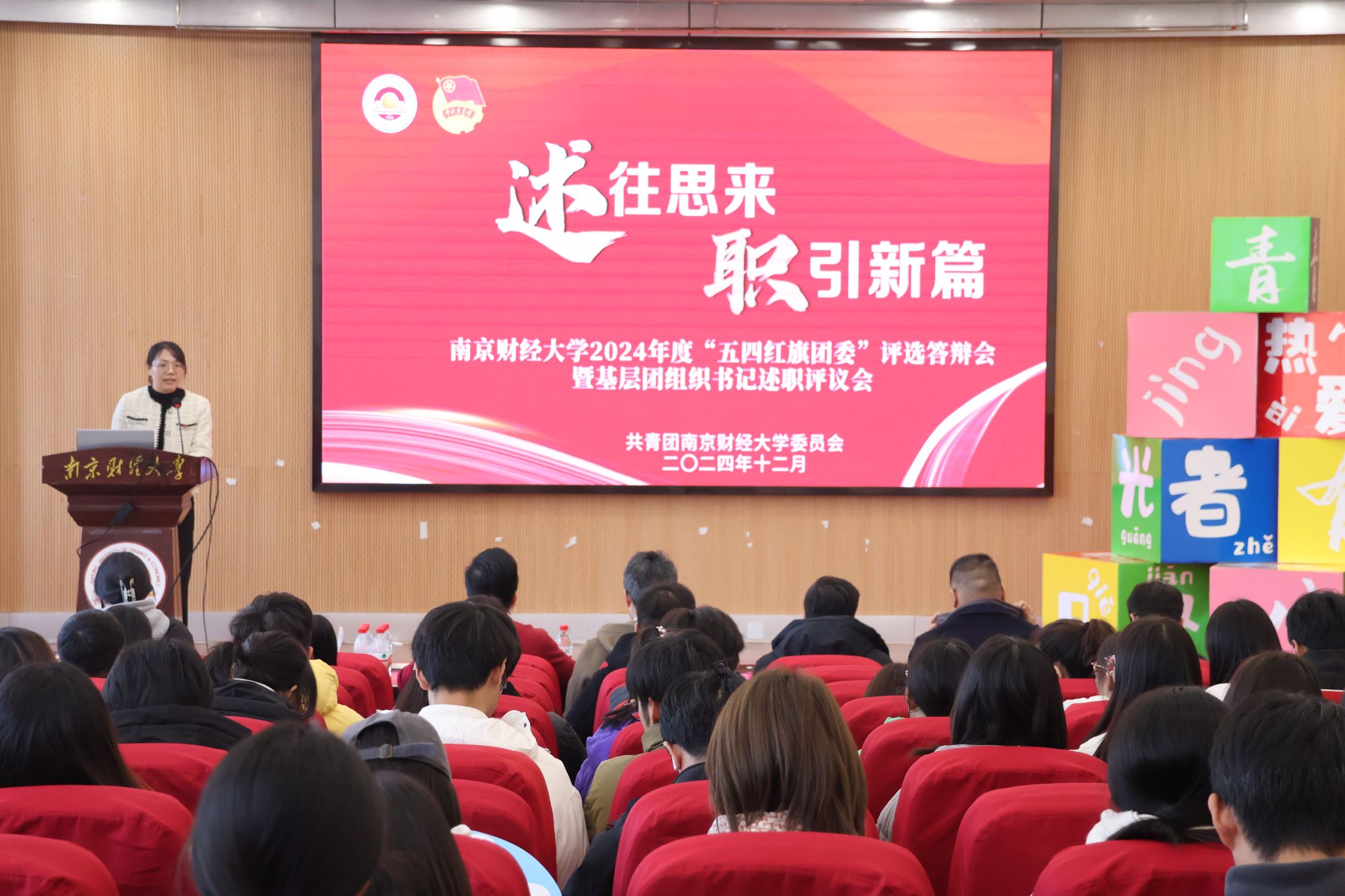 12月27日下午,2024年度“五四红旗团委”答辩暨基层团组织书记述职评议会在仙林校区大学生活动中心三楼报告厅举行。团省委委员、南京工业大学团委书记王郁超,南京邮电大学团委书记秦昌建,南京师范大学团委副书记徐逸霏,beat365团委副书记胡新蕲、陈涛担任评委。各学院团委书记、学生副书记,校五星级团支部书记、五四红旗团支部书记代表到场观摩。会议由校团委组织与社团管理科科长乔俊鸽主持。