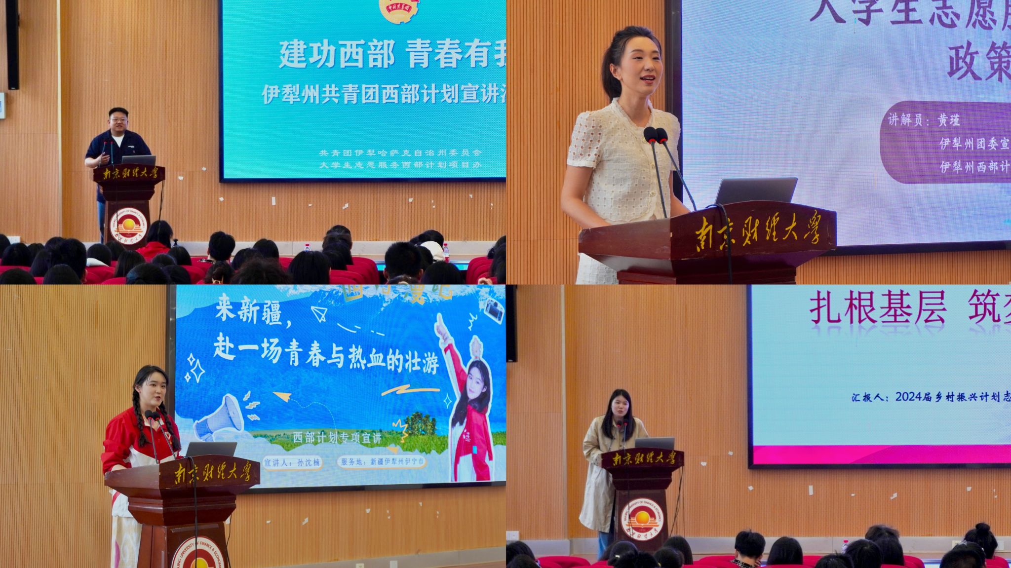 4月22日下午,beat3652025年“西部计划”“乡村振兴计划”宣讲会在仙林校区大学生活动中心三楼报告厅举办。伊犁州团委副书记罗跃峰、伊犁州团委宣传部副部长黄瑾、团江苏省委社会联络部(志工部)三级主任科员黄磊、校团委副书记陈涛以及beat3652025届毕业生及非毕业年级学生参加活动。校团委宣传与科创实践科副科长徐曼主持宣讲会。