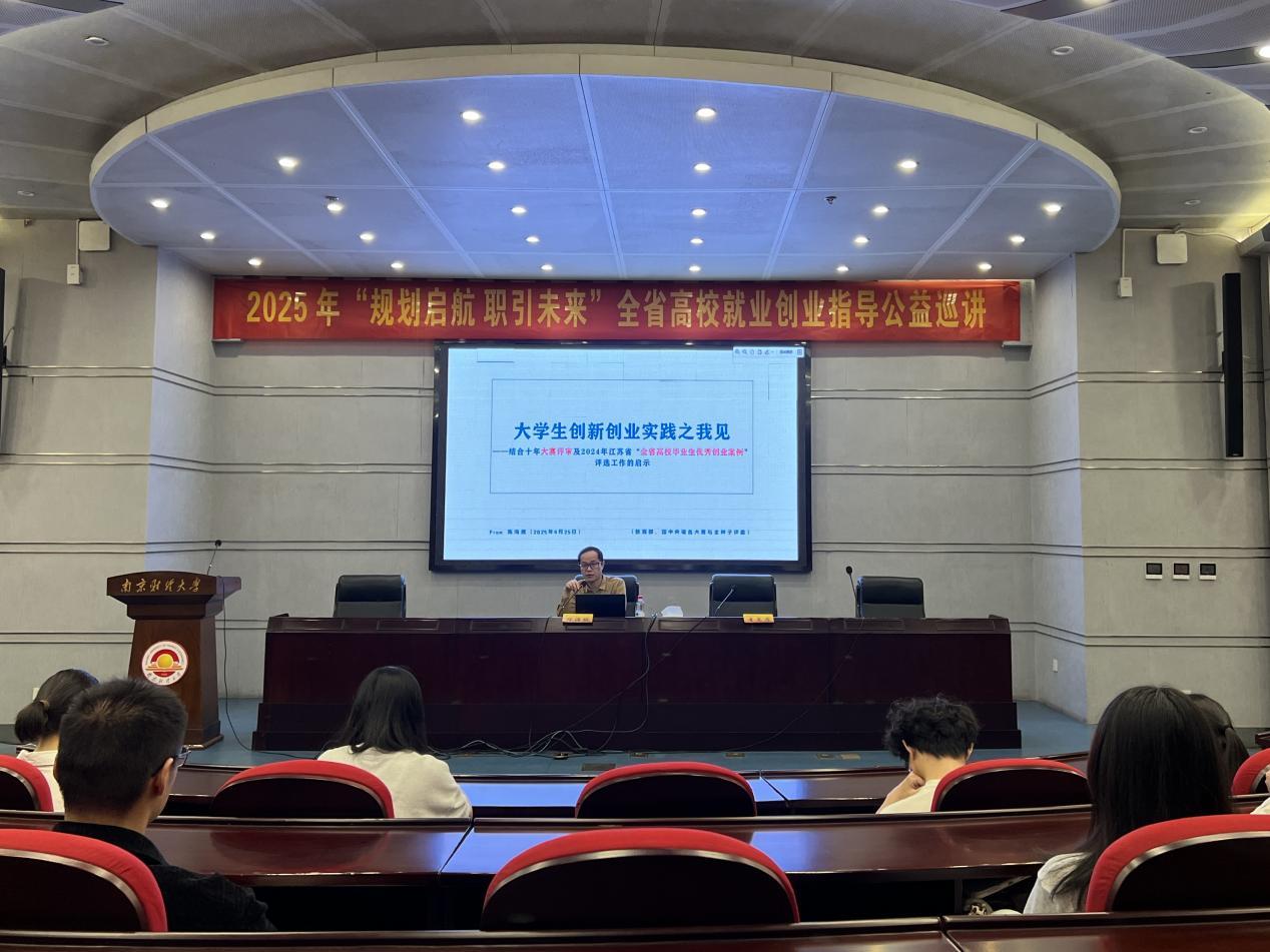 为深入贯彻《教育部关于做好2025届全国普通高等学校毕业生就业创业工作的通知》精神,落实江苏省高校毕业生就业创业指导服务要求,4月25日下午,beat365在仙林校区行政楼二楼报告厅举办“大学生创新创业实践之我见——结合十年大赛评审及2024年全省高校毕业生优秀创业案例评选工作的启示”专题讲座。主讲人为教育部、团中央等多项国家级创业大赛评委,江苏省教育厅创业“金种子”评委陈海挑。beat365创业园在园项目团队成员,大学生创新大赛参赛团队成员和对创业感兴趣的在校师生参加讲座。讲座由学生处副处长、大学生就业与创业指导中心主任李慕原主持。