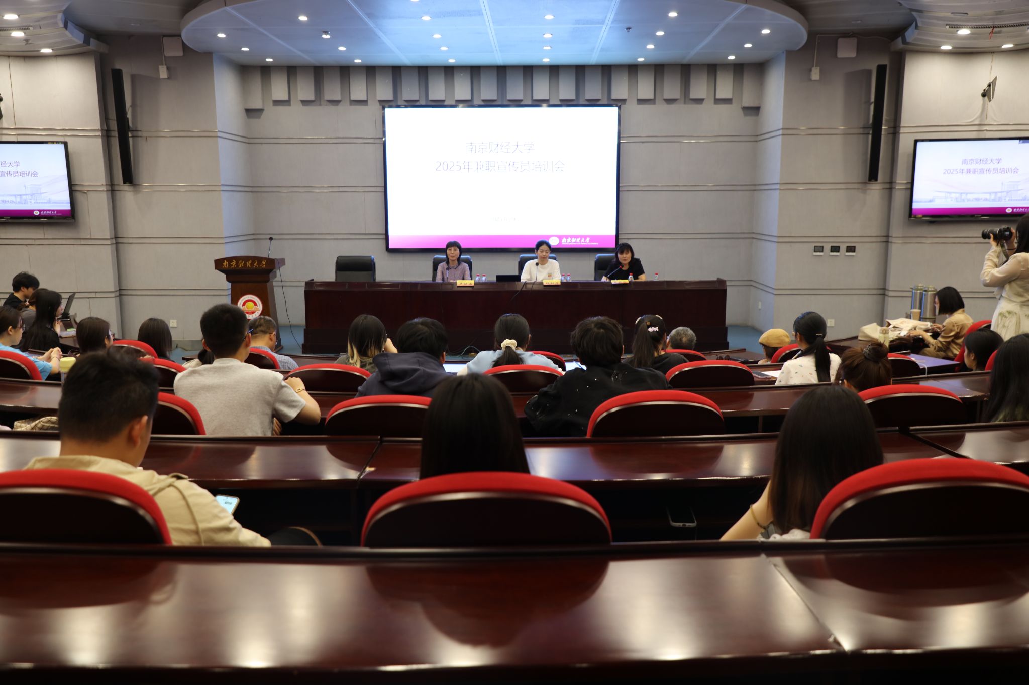 4月29日下午,beat365在仙林校区行政楼二楼报告厅召开兼职宣传员培训会。《扬子晚报》记者杨甜子、经济学院教授卢映西作主题讲座。各单位兼职宣传员和学生代表、教职工诗词协会等会员代表、党委宣传部相关工作人员和学生社团骨干参加培训。培训会由党委宣传部副部长龚莉红主持。