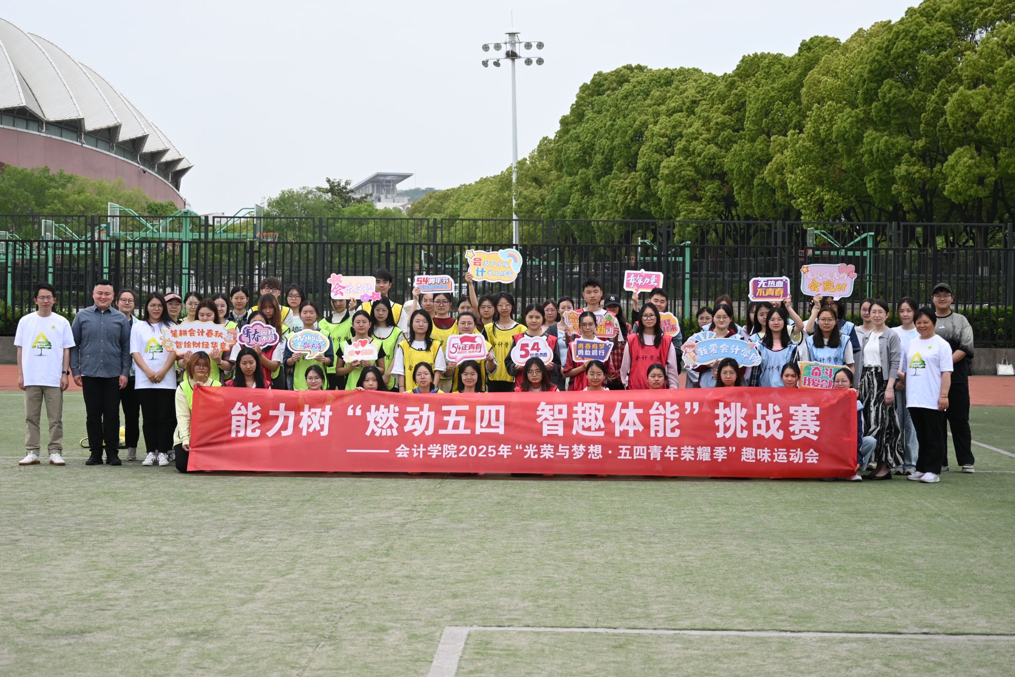 会计学院开展趣味运动会,4支斗志昂扬的队伍、48位朝气蓬勃的青年学子,通过“重走长征路”“鼓动人心”“一圈到底”“体教融合”等独具匠心的沉浸式党史主题项目,在协作中解码红色基因,于竞技中传承精神火种。