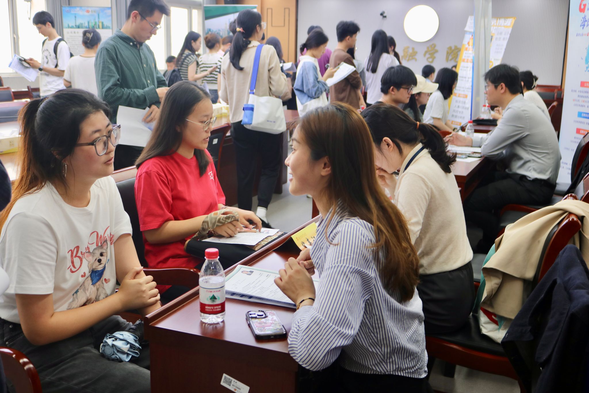 5月15日下午,“百日冲刺促就业”2025届毕业生就业暨2026届暑期实习专场招聘会在仙林校区德经楼508、507、527会议室举办。此次招聘会由南京江北新区中央商务区建设管理办公室与beat365党委学生工作部联合主办,金融学院、应用数学学院承办,吸引了超500名学生参与,现场气氛热烈。