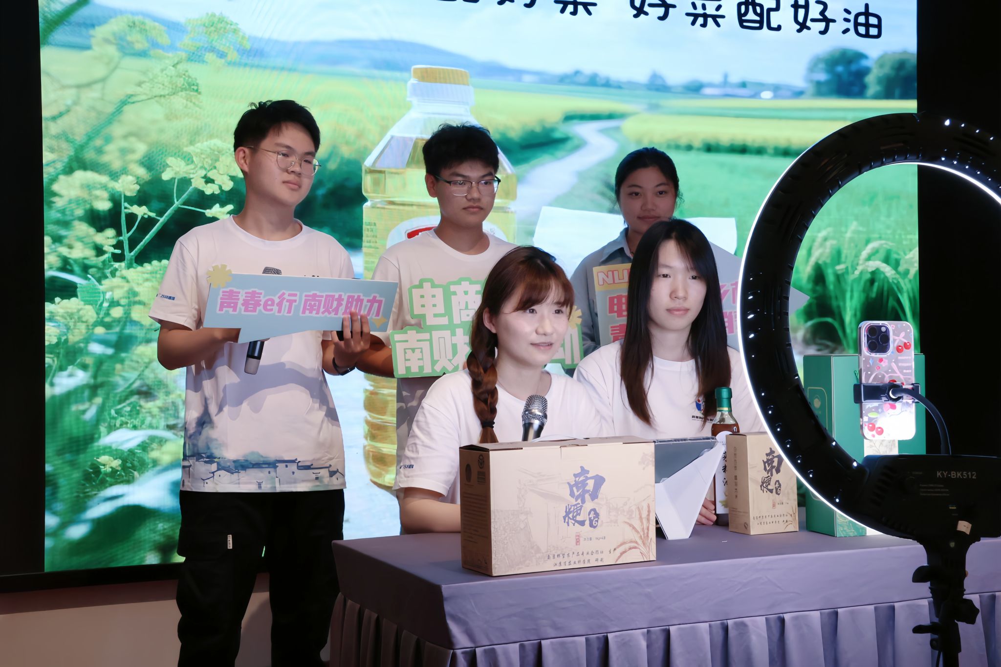 在栖霞区桦墅村“电商助农实训营”中,40余名学生与10名新农人结对,开启三天沉浸式助农行动。电商导师带领学员深入农村电商服务中心,实地拍摄多肉植物、农特产品素材并完成剪辑实操;在模拟直播间,各组围绕矿泉水产品展开选品讲解、话术设计、促单转化全流程对抗演练。