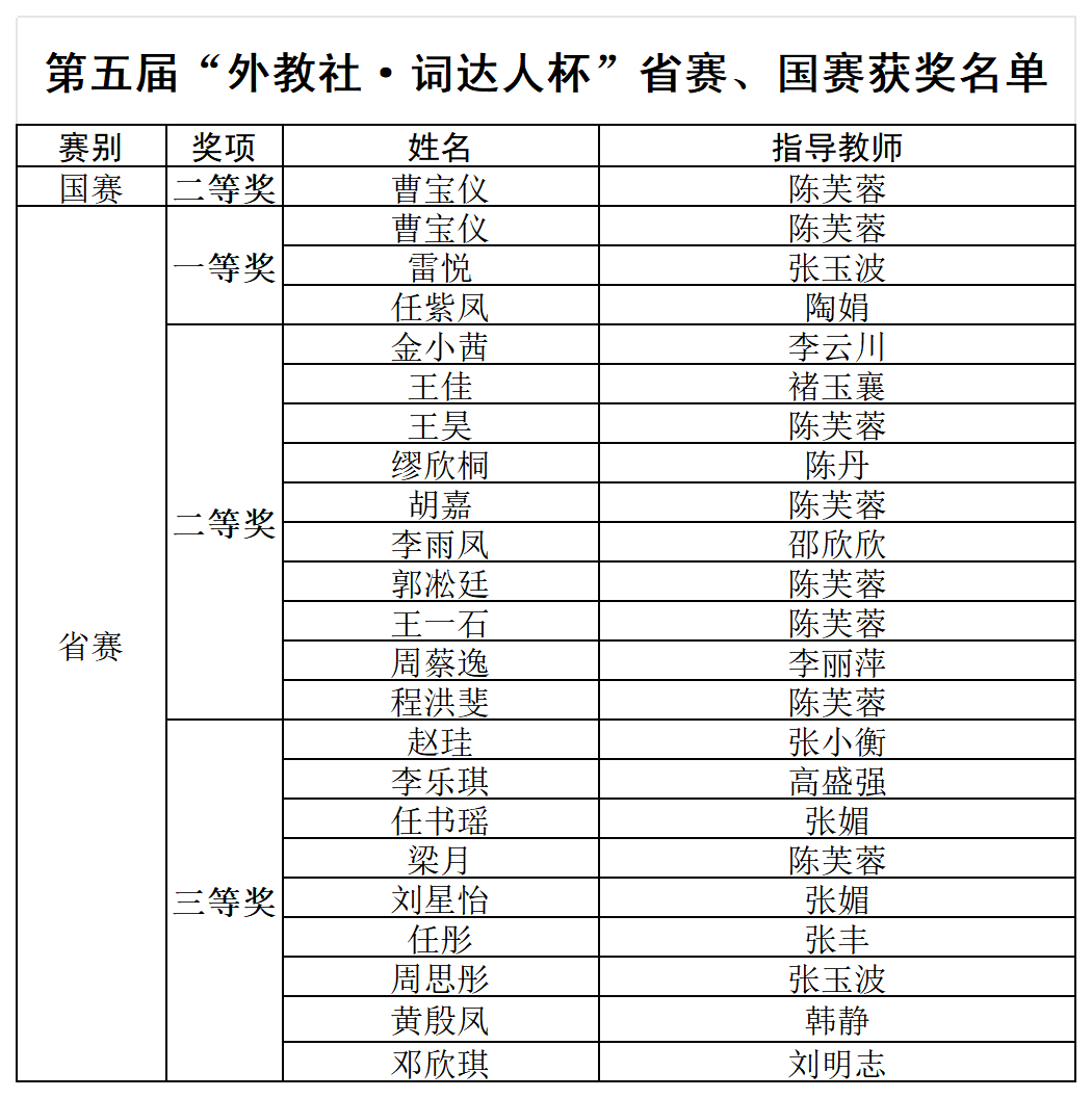 近日,第五届“外教社·词达人杯”全国大学生英语词汇能力大赛落下帷幕,来自全国1635所院校共计2095位学生参赛,经过激烈角逐,beat365营销2023级曹宝仪同学荣获全国二等奖。