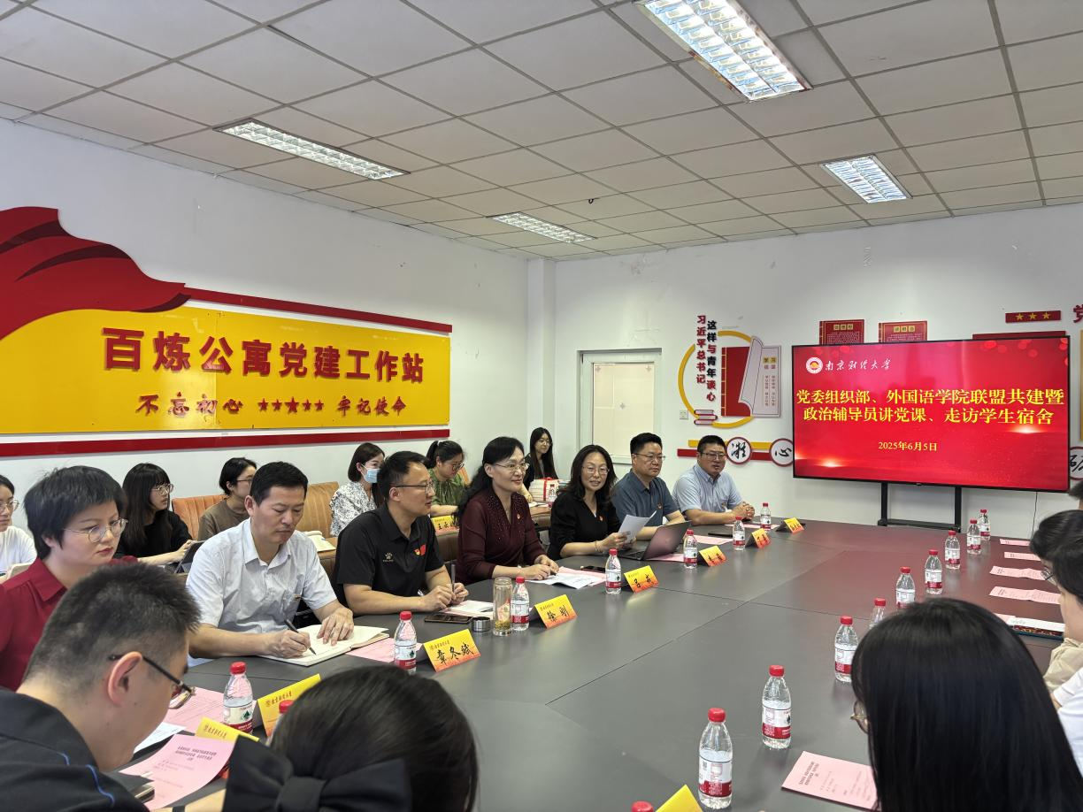 6月5日,外国语学院与党委组织部、党校、机关党委在“一站式”学生社区百炼党建联盟工作站开展联盟共建暨政治辅导员讲党课、走访学生宿舍活动。党委常委、组织部部长、党校常务副校长、外国语学院研究生党支部政治辅导员吕戎参加活动并讲授专题党课。机关党委书记、党委组织部副部长徐刚,外国语学院党委书记李骏、副院长(主持工作)丁强及党委组织部全体党员、学院师生代表参加活动。活动由李骏书记主持。