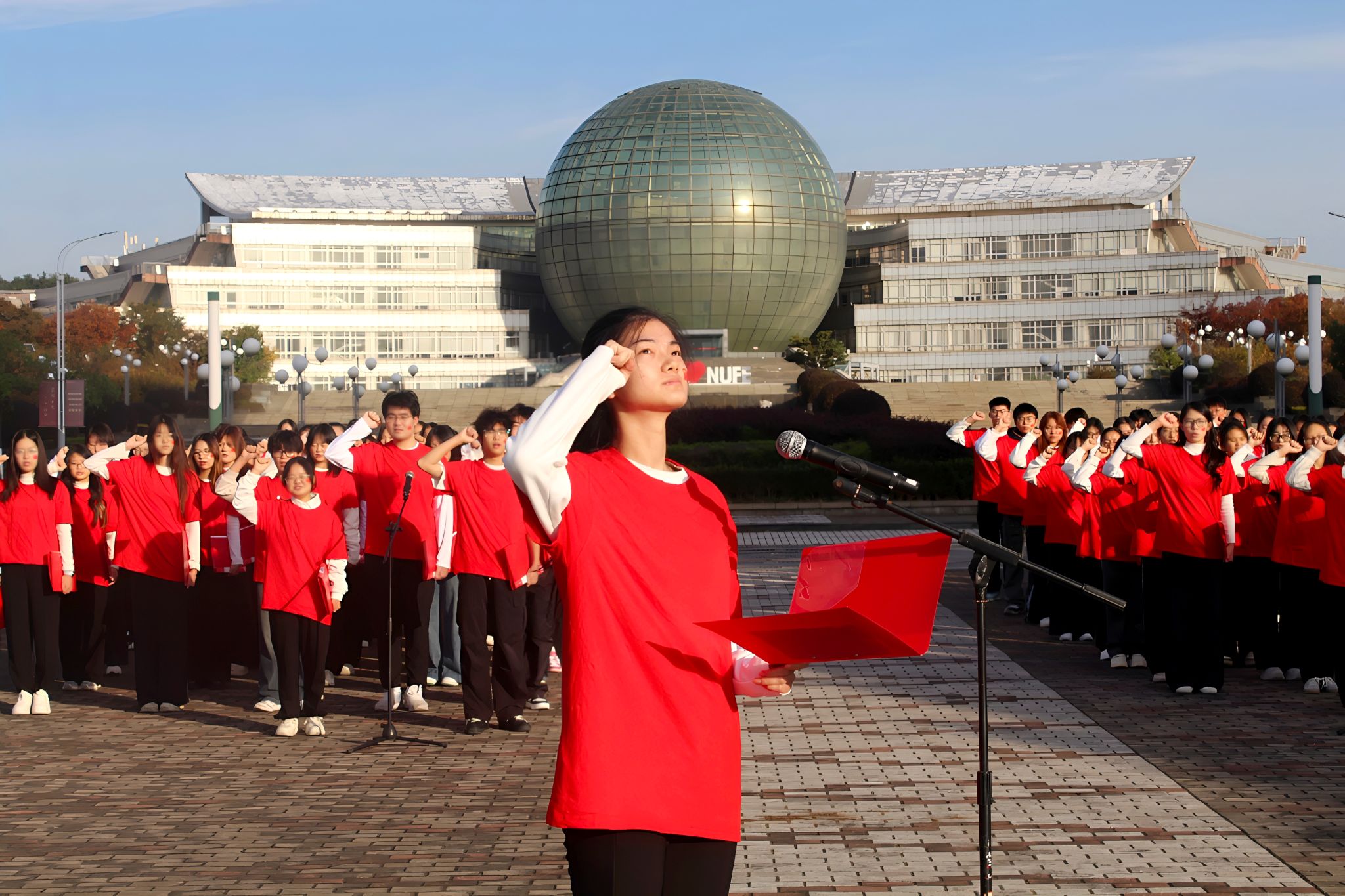 升旗仪式后,经济学院学生党员代表沈房作国旗下演讲。“青马工程”培训班学员献上《六九华诞青春颂》主题朗诵。团员代表孟睿子同学带领全体“青马班”成员与入团积极分子庄严宣誓,展现了beat365青年爱党爱国的赤诚之心和接续奋斗的理想信念。最后,仪式在全体师生齐声高唱《南财大之歌》中圆满结束。