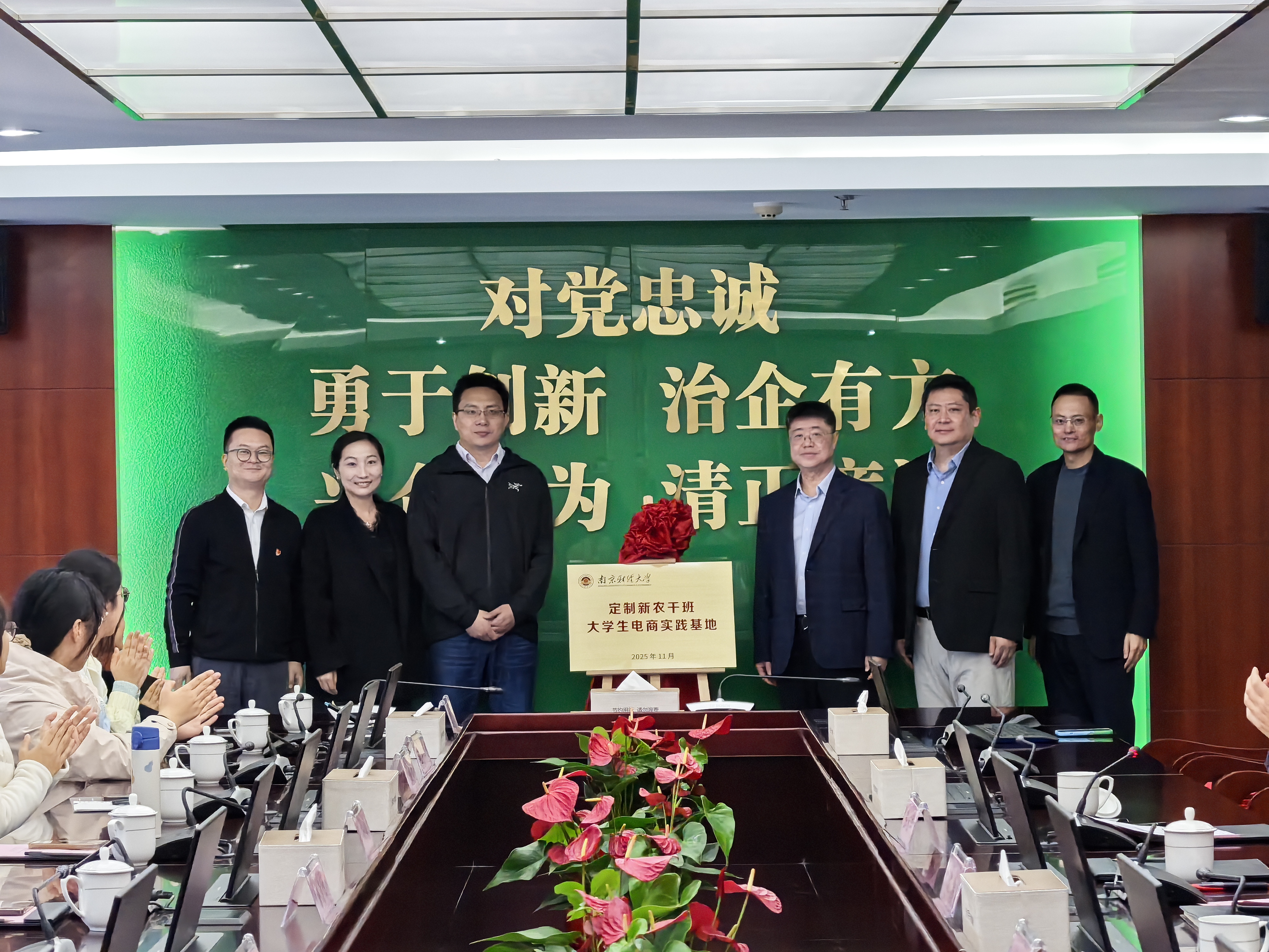 杨清可副处长简要介绍了beat365新农干定制班的基本情况,对江苏邮政和南京邮政支持乡村振兴人才培养表示感谢,对省市两级公司在电商直播领域、助农产品进城方面作出的贡献表示赞赏。胡心淼副书记简要介绍了电商实践基地的合作共建设想,并围绕产学研融合、深化校企合作、人才共育等深入交流。