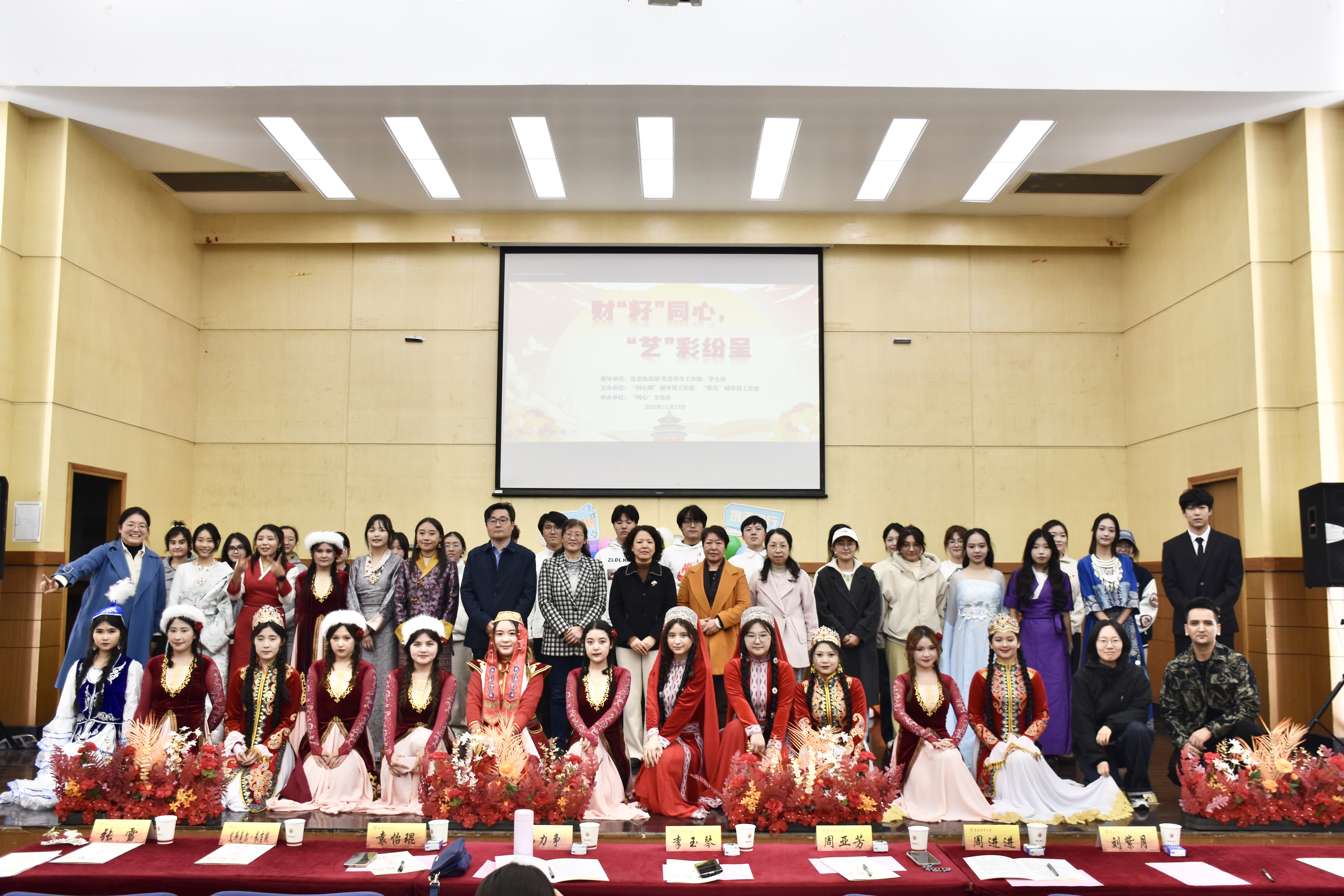 11月17日晚,由beat365党委学生工作部主办,“同心圆”辅导员工作室、“薪火”辅导员工作室及“同心”文化社联合承办的“财‘籽’同心,‘艺’彩纷呈”民族团结主题展评会在仙林校区德济楼报告厅举行。党委常委、统战部部长李玉琴,党委学生工作部部长、学生处处长韩力争,国际经贸学院党委书记周亚芳,学生处副处长袁怡琨,国际经贸学院党委副书记周进进等领导参加活动,与各族师生欢聚一堂。