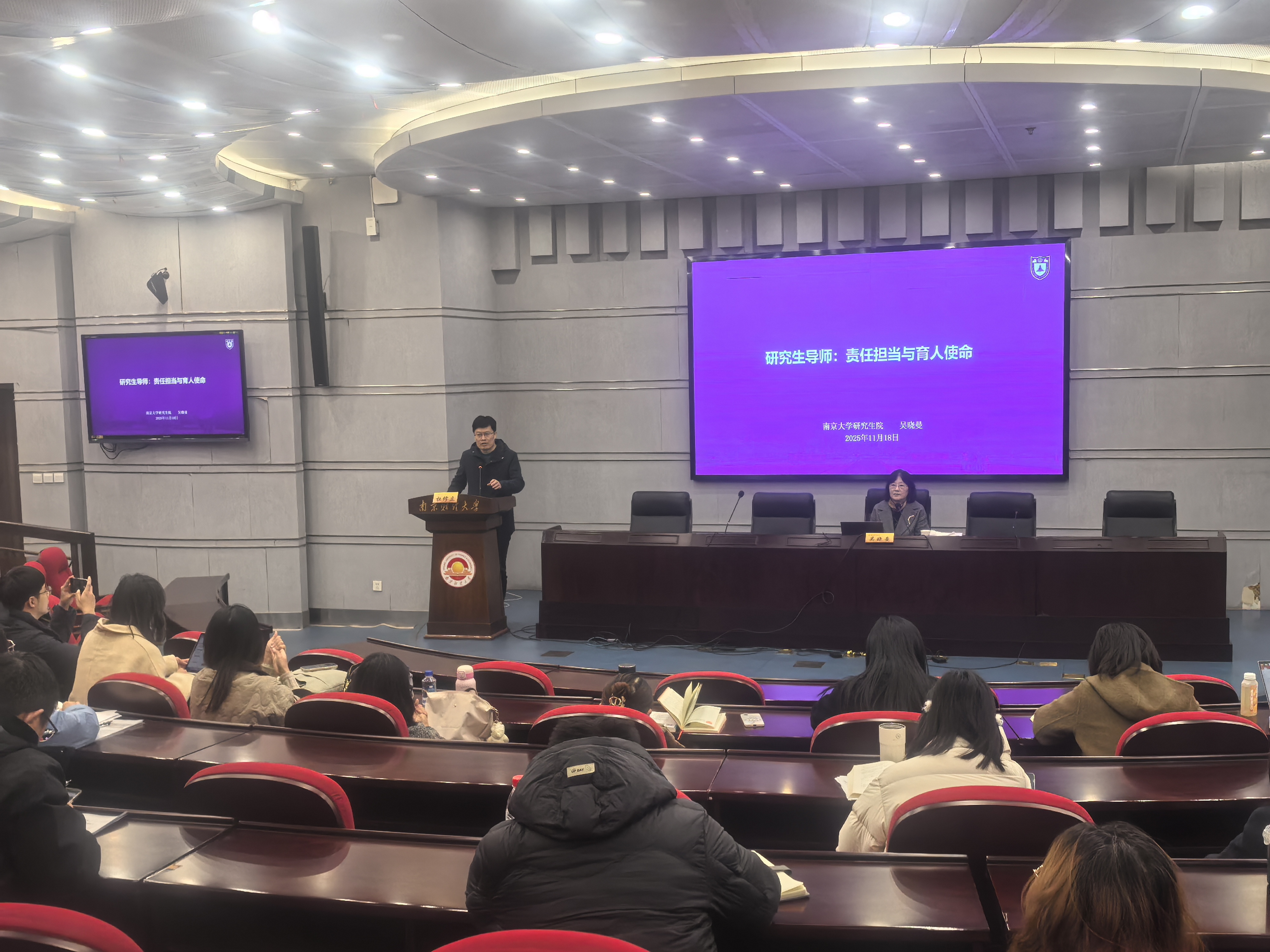 11月18日下午,beat3652025年新增研究生指导教师培训会在仙林校区行政楼二楼报告厅举办。本次培训特邀南京大学研究生院副院长吴晓曼、beat365心理健康教育中心教师李喆君担任主讲嘉宾。2025年新增博士、硕士研究生导师及研究生院相关工作人员参加培训会。会议由研究生院副院长、学位办副主任杜修立主持。