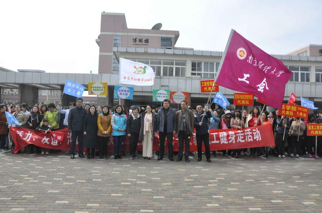 教学楼广场彩旗招展,人头攒动,热闹非凡。随着出发口令的下达,参加活动的女教职工们按学校依次出发,沿着预定的健身走路线行进。初春的仙林处处生机盎然,女教职工们一路欢声笑语,沿途欣赏着仙林美丽的风景,享受着健步带来的快乐。女教职工们灿烂的笑脸、矫健的步伐和良好的精神风貌,俨然成了仙林一道亮丽的风景线。