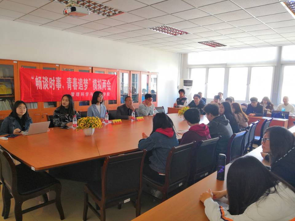 3月14日,管理科学与工程学院在仙林校区徳济楼507举办了“畅谈时事,青春追梦”模拟两会活动。管理科学与工程学院党总支副书记袁军,团总支书记唐方舟,副书记全思源、沙凯馨担任评委。学院第八期青马班全体成员参加了活动。