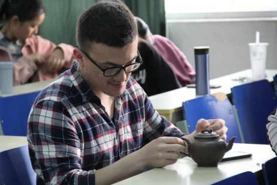 “我觉得它真的很漂亮,非常有中国文化的特点,做的非常精致。”坐在前排的哈萨克斯坦留学生弗拉德不禁惊叹,他提到之前就很喜欢喝中国茶,也曾有买过茶壶在家里泡茶,比如乌龙、铁观音、普洱等。这次听完讲座后,他对紫砂壶的兴趣更是提升了一个高度,“觉得用紫砂壶来泡茶口感一定会更好,既有格调,也很有趣。”