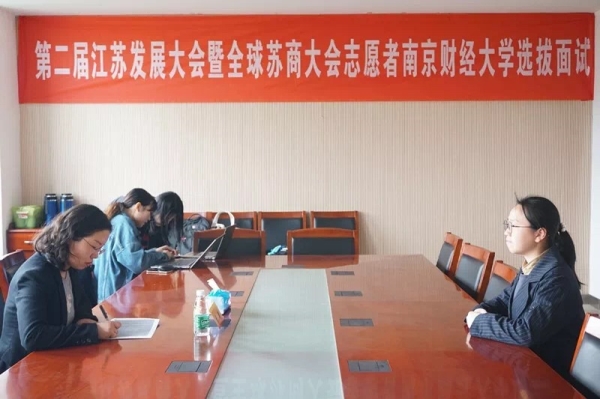 面试分5组进行。面试过程中,面试官详细了解前来面试的同学们的基本信息及他们对全球苏商大会的信息掌握度,多方位、全面地考察同学们的志愿能力,努力为第二届江苏发展大会选拔出一批优秀、认真负责的南财志愿者,保障此次江苏发展大会暨全球苏商大会成功举办。