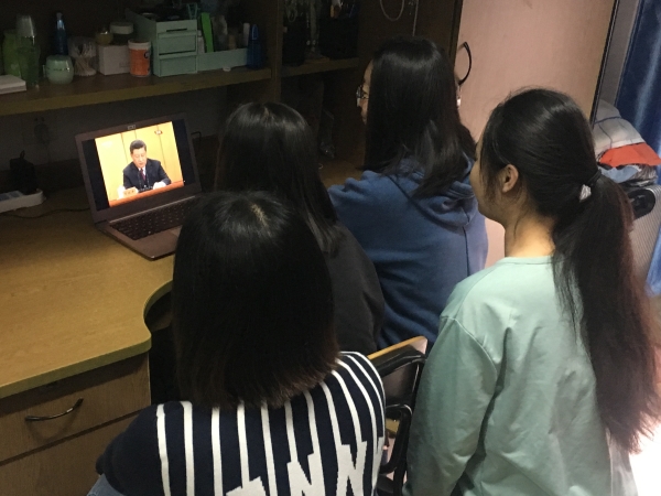 团员青年在宿舍观看大会