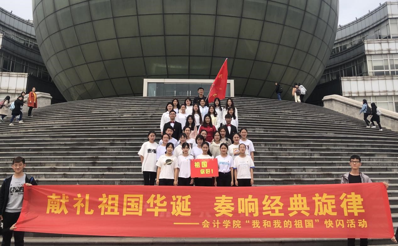 会计学院举办了《我和我的祖国》快闪活动,管理科学与工程学院举办了升国旗、快闪红歌活动。刘云嵩和李鲤同学深情吟唱的《我和我的祖国》拉开了快闪红歌的序幕。一首《光荣啊,中国共青团》点燃了现场气氛。升旗仪式上,大家齐唱国歌行注目礼。随后,优秀共青团员代表林上涵同学主讲微团课,全体学生齐声朗诵诗歌《祖国啊,我亲爱的祖国》。之后,大家右手握拳,一起重温入团誓词,重温入团的庄严时刻。仪式结束后,同学们挥舞着手中的五星红旗,高喊“祖国,你好!”,并纷纷在横幅上写下了自己的姓名和奋斗目标。管理科学与工程学院党总支副书记袁军表示,采用升旗、朗诵、微团课和快闪相结合的形式,突出仪式教育感召作用,组织全体共青团员在庄严肃穆的仪式中接受“沉浸式”精神洗礼,同时融入共青团员喜闻乐见的现代快闪方式,彰显青春活力。