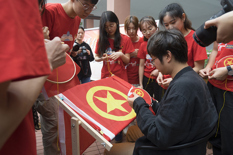 4月25日,受国际经贸学院之邀,2011届毕业生绣郎张雪带着苏绣与一份共青团的“独家记忆”回到了仙林校区德业楼六楼,带来一堂苏绣实践课。在讲解好苏绣的劈线和针法后,张雪带着beat365五十多名在校青年,用传统工匠技艺绣团旗。在张雪老师手把手的指导下,大家的小团旗也都开始有了大致模样。经过两小时的努力,大部分学生都绣出了一面面完整的小团旗,拿着小团旗,大家一起唱起了共青团团歌。活动负责人马冬梅同学说:“我们会继续用张雪老师教我们的方法绣完大团旗,在五四期间,带着这面团旗前往红色革命教育基地,铭记先贤,重温入团宣誓的初心,纪念五四运动100周年。”国际经贸学院党委副书记季霞说:“绣团旗的活动是为了让我院学子们感受到共青团就在我们身边,我们都是共青团的一份子,应该时刻牢记使命,不忘初心,为共青团的建设贡献出自己的一份力量。”