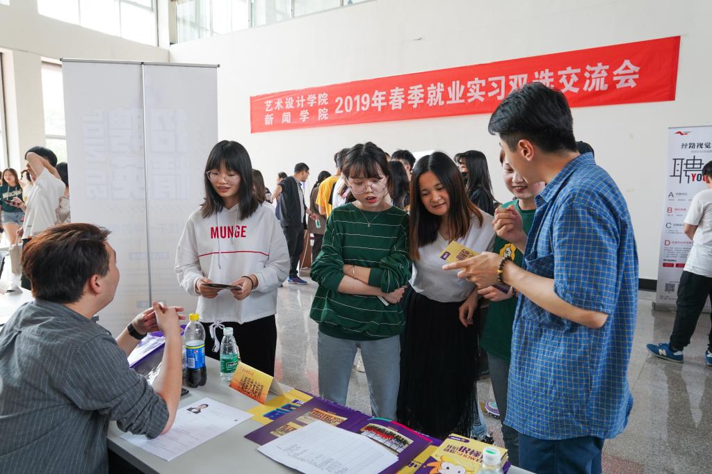 5月10日,由艺术设计学院、新闻学院联合主办的就业实习双选交流会在仙林校区艺术学科楼美术馆举行,包括奥美景观、亚明室内设计、六策传媒、小银星艺术培训学校等在内的数十家传媒、设计类公司应邀参加交流会。