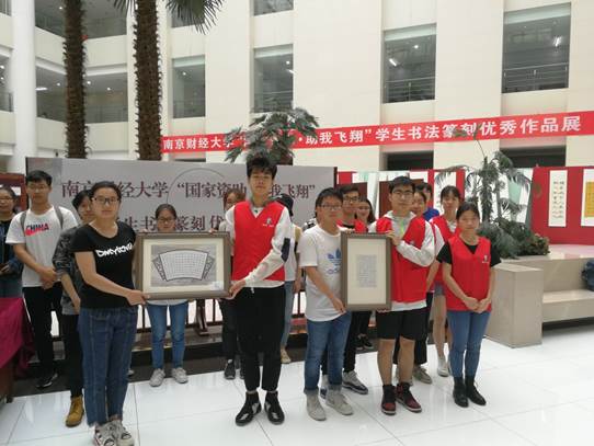 5月27日,由学生处主办、艺术设计学院承办的“国家资助·助我飞翔”学生书法篆刻优秀作品在仙林校区图书馆二楼展厅开幕。