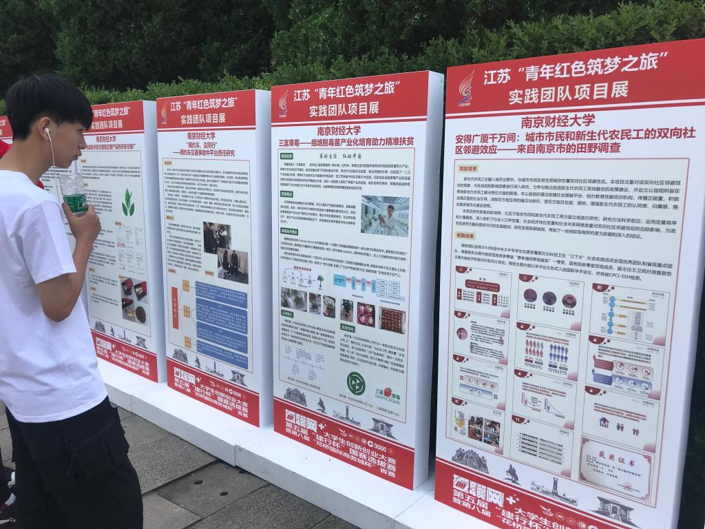 beat365经济学院《安得广厦千万间:城市市民和新生代农民工的双向社区邻避效应——来自南京市的田野调查》(项目成员:朱雨瑶、葛菲、韩艺、曾越,指导老师:张成)、艺术设计学院《三富草莓——组培脱毒苗产业化培育助力精准扶贫》(项目成员:窦三丰、夏苏玉、陶素敏、李文雪、王叶蓁、公丕海、陈慧茹、许冰冰、张澍、吴雨豪、李思含、姚雅卿、徐阳、彭彪,指导老师:李龙生、吴小明、张昕欣)、法学院《“网约车,法同行”——网约车交通事故中平台责任研究》(项目成员:唐嘉源、王立斌、刘永琰、孙秀雯、王丽丽、马玥、张璐、赵俊斌、杨维韬,指导老师:钱玉文)、食品科学与工程学院《基于纳滤技术的无糖产品的研发与推广》(项目成员:包伊凡、孙璐、司家郡、卢玉、柳雯雯、薛佳敏、颜铭秀、貌学俊,指导老师:汪芳)等四个项目入选实践团队项目展。其中,《基于纳滤技术的无糖产品的研发与推广》项目与宜兴正玉家庭农场达成合作意向并现场签约。