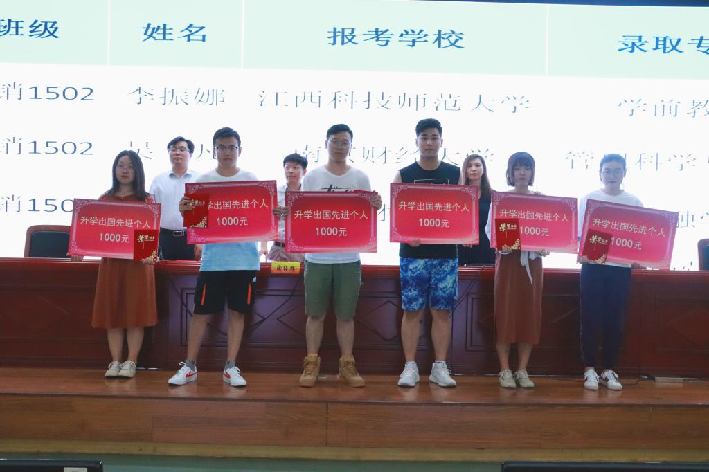邱玉琢副院长宣读对43名升学出国先进个人的表彰决定。领导老师为升学出国先进个人颁发奖金和证书。