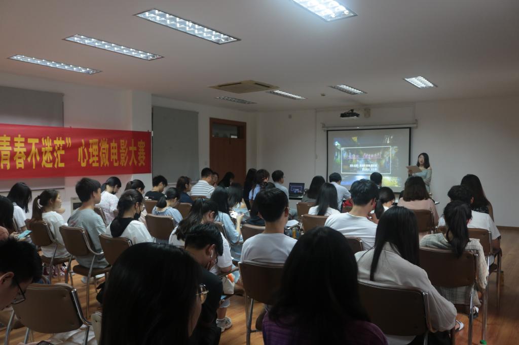 作品展示后,李喆君老师从心理健康教育的视角对六个作品进行了详细的点评;李博伟副书记总结表示,微电影是心理健康教育的一种新形式和途径,希望同学们更多关注和参与心理健康教育活动,在大学生活中学会相互交流、包容他人、悦纳自己。