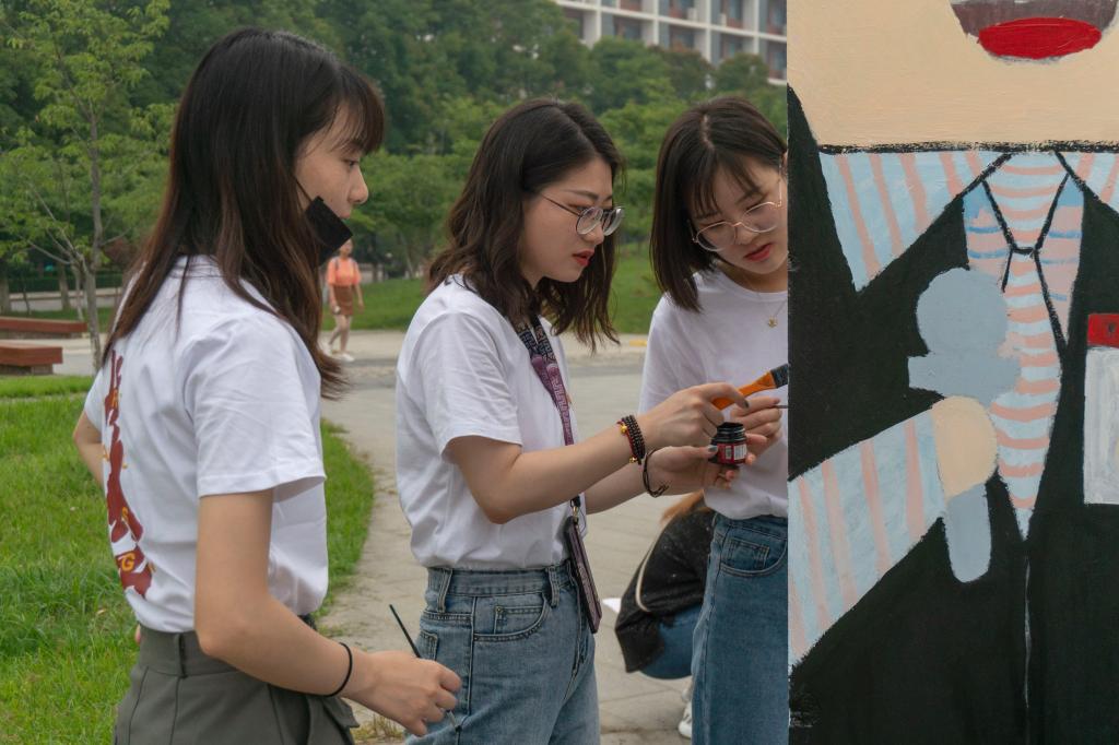 “当年是我们在担任学生会部长时带领着学院的同学们一起策划完成了‘梦想号’时光列车站的景观改造。三年来,无论是毕业季还是新生开学季,这里都成了同学们互相拍照留念的必选场所。如今,见证了众多莘莘学子选择南财站汲取知识养分,也见证了一茬茬优秀南财人从这里走向未来的‘梦想号’时光列车在风雨吹打下已略显斑驳。我们也即将收拾行囊,从这里踏上人生新征途。在学院的号召下,我们再次拿起画笔,为属于我们的独特记忆添抹上一缕新色,留下我们在南财的最后一缕记忆。”艺术设计学院2019届毕业生王梦妍介绍说到。