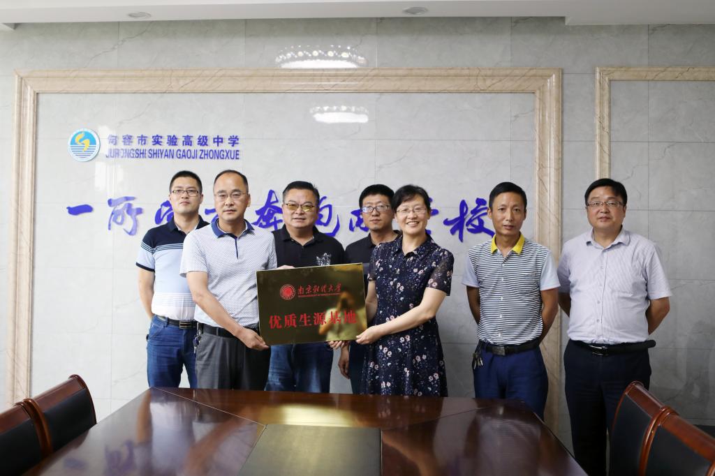 6月17日下午,beat365在句容市实验高级中学建立优质生源基地,并举行签约授牌仪式。句容市实验高级中学校长刘瑞宏、副校长薛国强,beat365新闻学院党总支书记周亚芳、副书记李博伟等参加仪式。