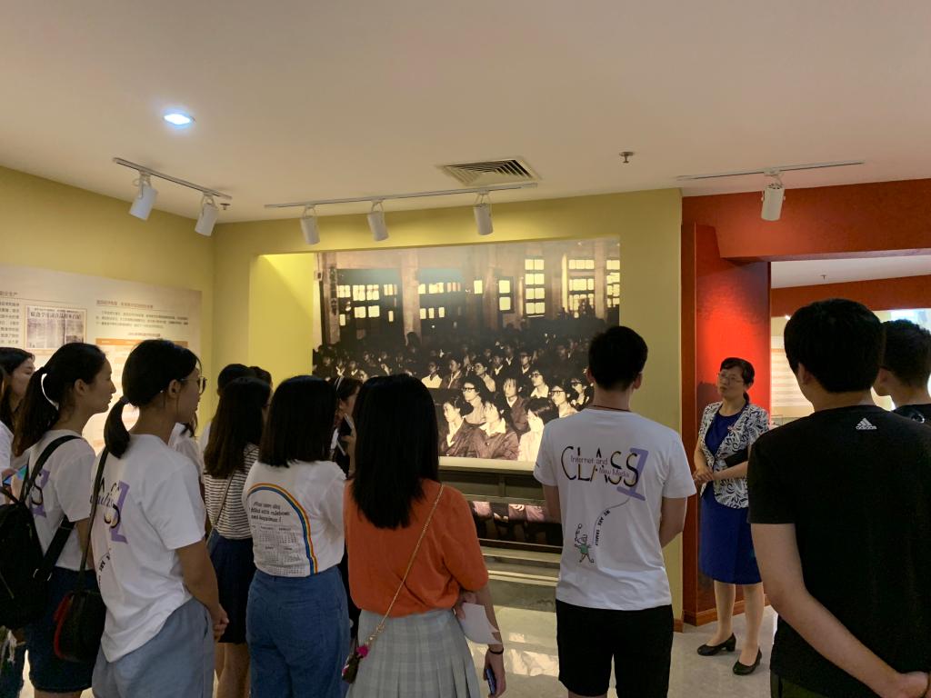毕业生党员在老师们的带领下一起从六十多年前的老校门模型下走过,缓缓进入校史馆。周亚芳书记以校史讲解者的身份带领大家一起回顾了学校初创、困境发展、发展壮大、跨越发展和内涵建设时期走过的奋斗历程。一幅幅安静的黑白图片,通过周亚芳书记细致诙谐的讲解转化成一段段生动感人的故事。从黑白色的60年代,进入到色彩丰富的21世纪,同学们通过图片、数据以及多媒体的全方位展示,再次重温了母校63年来的发展成果、南财几代人奋斗的艰辛历程。