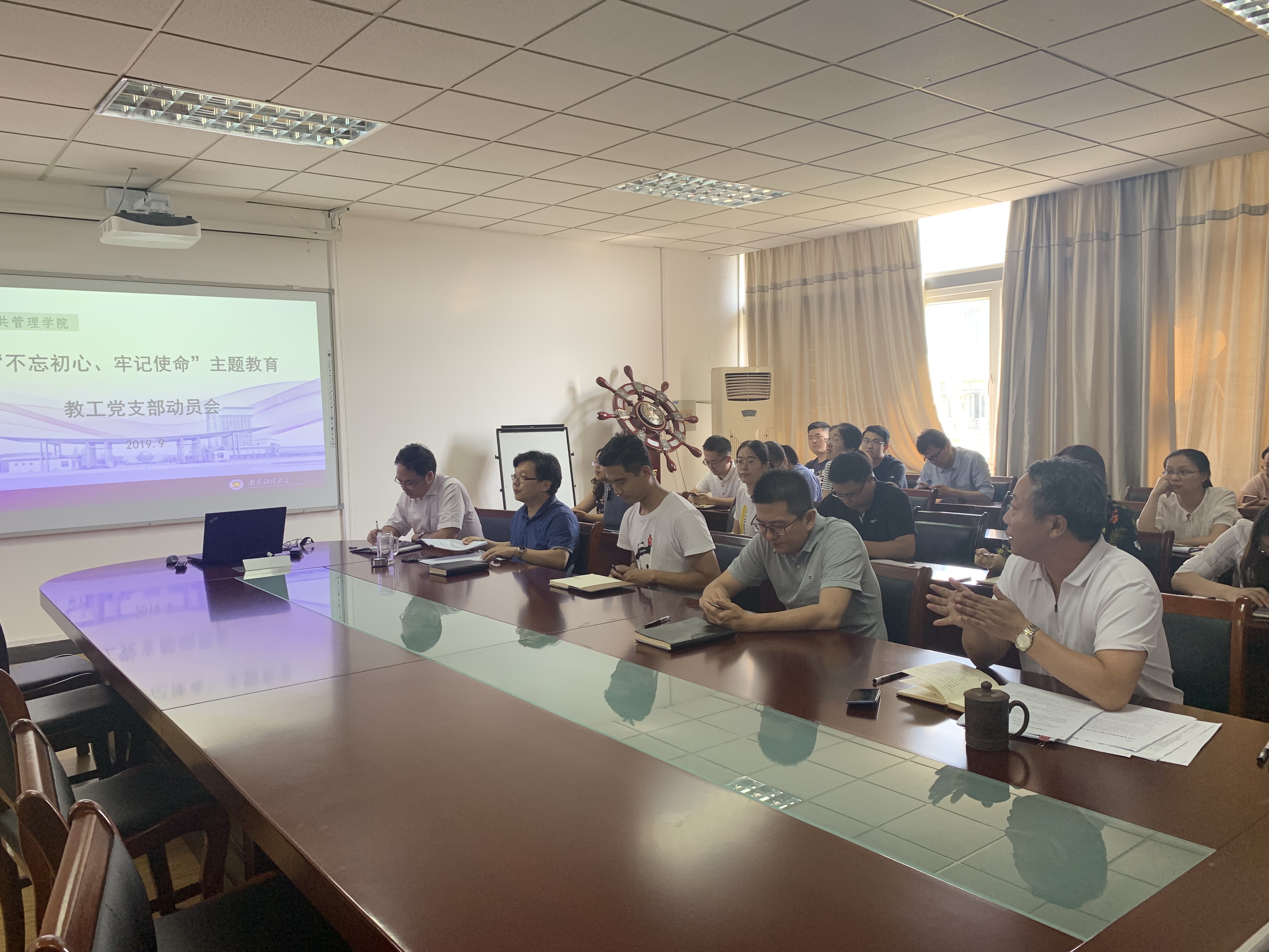 9月18日下午,公共管理学院教工党支部“不忘初心、牢记使命” 主题教育动员会在仙林校区德济楼508会议室召开。公共管理学院全体教工党员参加会议,会议由学院党委书记胡永远主持。