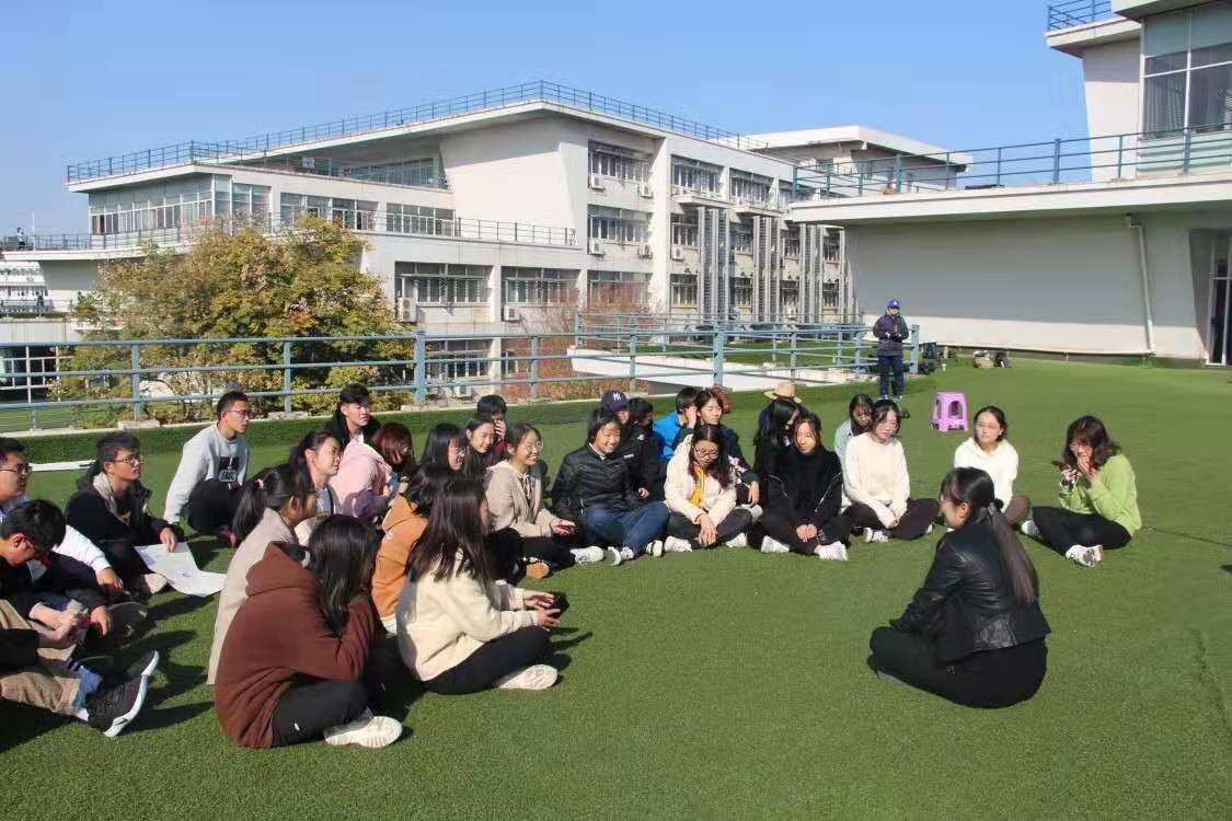 11月20日中午,外国语学院“草坪上的思政课”在仙林校区德正楼三楼草坪露台开讲。学院党委书记刘浩、党委副书记刘英华、学工系统老师以及2019级全体学生干部参加了活动。