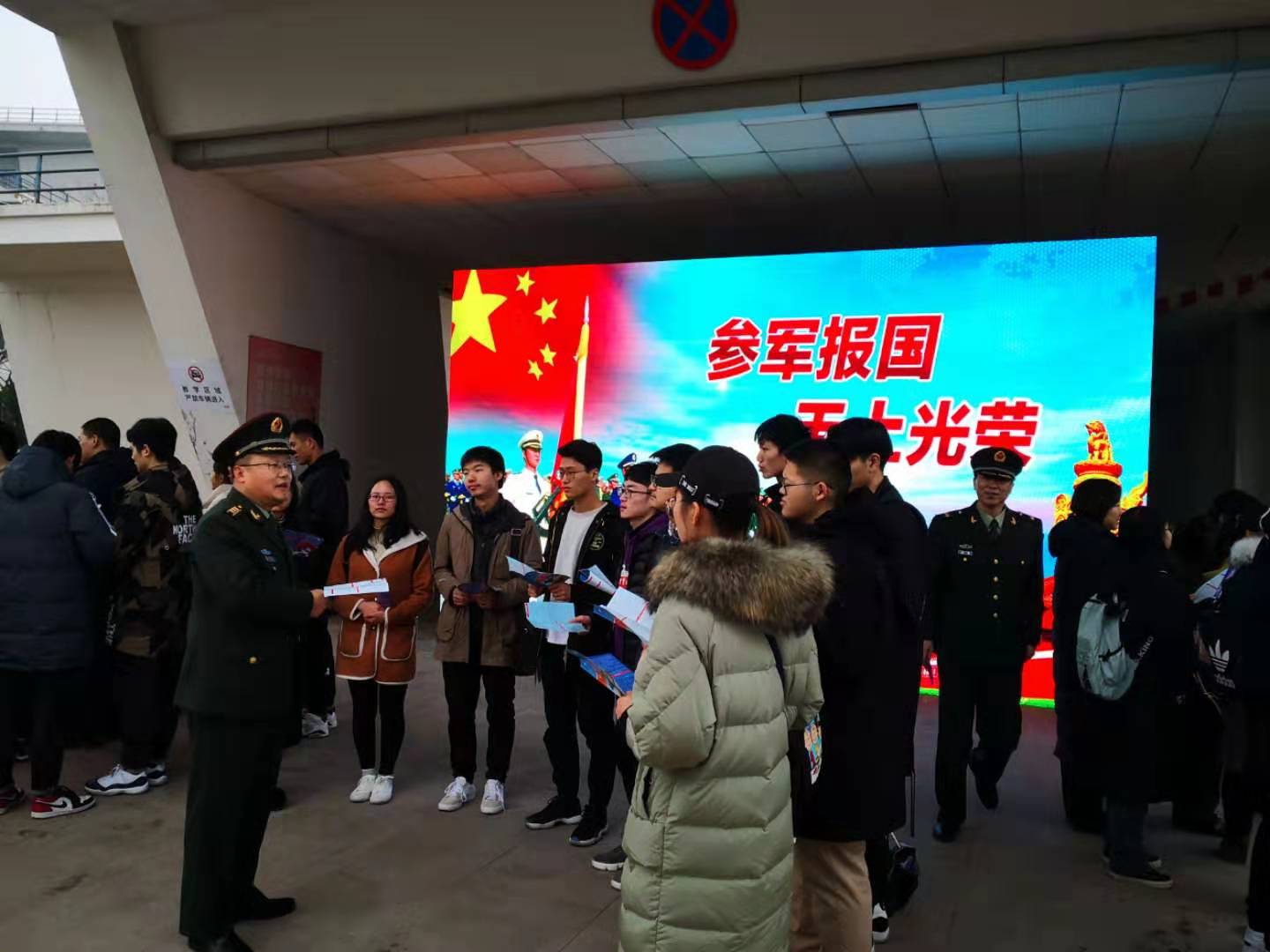 为推进大学生春季征兵工作,1月15日下午,beat365人民武装部联合金融学院在仙林校区德经楼开展征兵政策宣传活动。鼓楼区常委、人武部部长李运海,政委殷永达,人民武装部副部长张士青及部分学生代表参加活动。