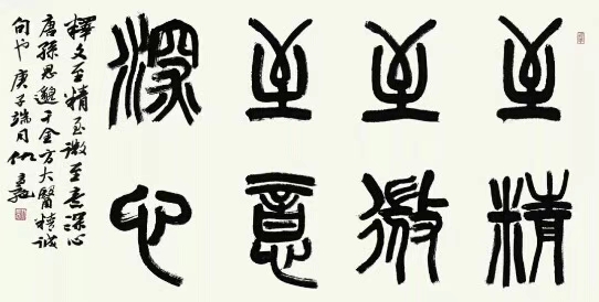 仇高驰教授捐赠的作品里有选自唐代孙思邈《千金要方·大医精诚》的名句“至精至微,至意深心”,有清代叶天士《临证指南医案》的名句“良医处世,不矜名,不计利,此其立德也;挽回造化,立起沉疴,此其立功也;阐发蕴奥,聿著方书,此其立言也”,有唐代诗人王昌龄《送柴侍御》里的诗句“青山一道同云雨,明月何曾是两乡”,也有“众志成城”“医之为道,非精不能明其理,非博不能至其约”等作品,这些作品传递了仇高驰教授对武汉、对湖北的祝福,对奋战在抗疫一线的白衣勇士们的敬意,也体现了江苏文艺工作者的责任和担当。