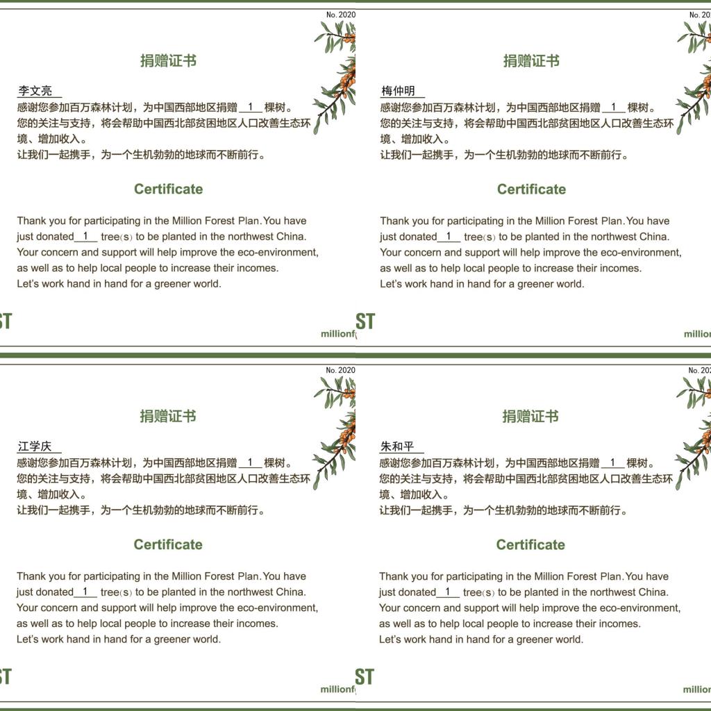 百万森林计划于2009年正式启动,由中国绿化基金会联合气候组织、联合国环境规划署共同发起,搭建植树造林平台,公众可以通过线上捐赠树木的方式,参与生态公益。此次活动的倡议者潘美羽表示:“我们以抗疫一线殉职的医务工作者的个人名义,通过线上向西部地区捐树的方式,希望在帮助西部贫困地区人口改善生态环境的同时,也将这些舍己为人、不畏牺牲的医护工作者的精神永远传承下去。”正在线上捐树的刘新媛同学说:“我之前也通过这个捐过树,但是这次的感觉很不一样,我们是替英雄们完成他们的未尽事宜,他们在抗疫一线,用生命护卫人民,我们把他们的名字写下来,伴随着一颗颗树苗长成森林。