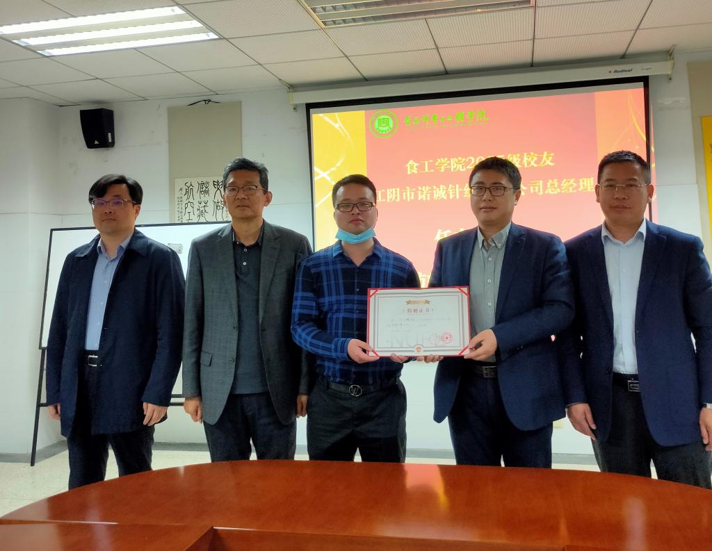 4月16日下午,食品科学与工程学院2009届优秀毕业生,江阴市诺诚针织有限公司总经理任志键向学院无偿捐赠自主生产的5000只防护口罩,助力母校疫情防控阻击战。捐赠仪式在仙林校区工科楼二楼会议室举行。校对外联络处副处长王立峰、王冲,食品科学与工程学院党委书记许文彪、副书记周进进等参加了仪式。