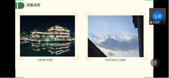 经过初赛投票,共有8名选手进入决赛。5月18日晚,选手通过线上会议对自己的参赛作品进行解说。选手的作品中,人文风景温馨动人,自然景色优美秀丽。作品解说结束后,评委老师从图片的构图、曝光、光线等方面作了细致入微的讲解。此外,评委老师还建议热爱摄影的同学去多多浏览、欣赏专业摄影师的作品,学习他们的构图方法、摄影角度,这样可以激发自己的灵感。