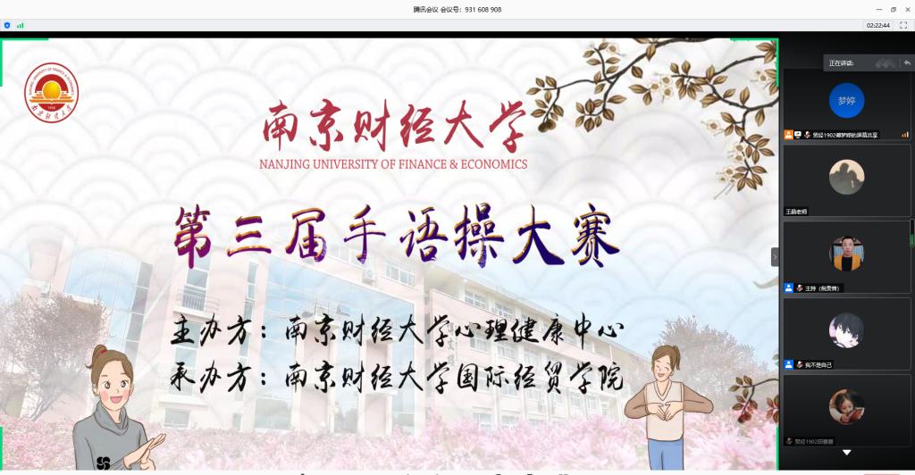6月9日晚,beat365第三届手语操大赛“手动舞出青春活力,抗疫宅家你我同行”在腾讯会议线上举行。比赛由学生处心理健康教育与咨询中心主办、国际经贸学院承办。南京师范大学心理中心老师王佳莹,beat365心理健康教育与咨询中心老师吴垠、吴琦担任评委。全校共有14支队伍参赛。
