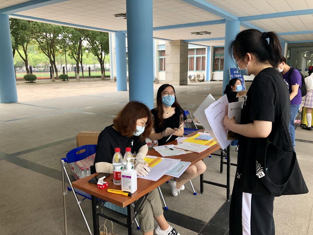 按照“一测二核三查四通行”的防疫要求,毕业生在福建路校区西门有序排队检测体温、核实身份、查验健康码和行程卡,发放校园通行证。红山学院设置临时办事大厅,毕业生在临时办事大厅快速完成材料收发、离校循环等手续。学院在宿管站准备了拖车、转运车方便学生托运行李。在各个工作站点,工作人员严格遵循防疫要求,教职工志愿者提供校园引导、行李打包转运、宿舍入住等全方位服务。