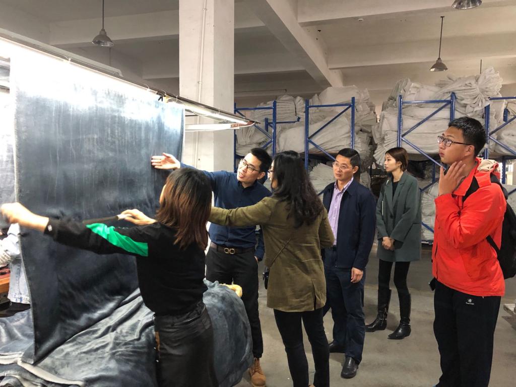 优秀校友带领师生参观硕奇家纺有限公司