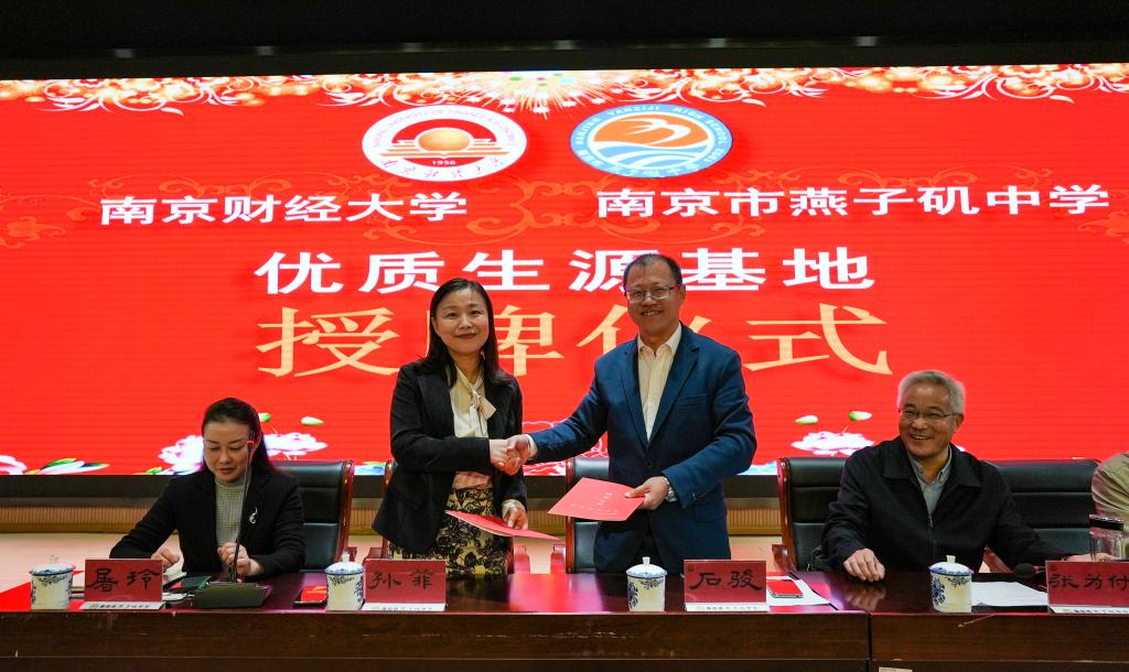随后,孙菲副处长和石骏校长签署了《beat365英国官方网站与南京市燕子矶中学优质生源基地建设协议书》,张为付副校长为南京市燕子矶中学优质生源基地授牌。