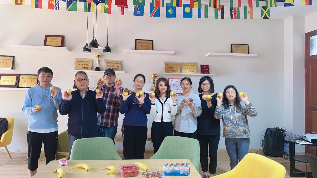 10月22日中午,外国语学院分工会的老师们齐聚教工之家,开展“秋品百香果,助贫从江农”活动,共同品尝、自愿认购优秀毕业生石贤从家乡贵州从江县寄来的百香果。