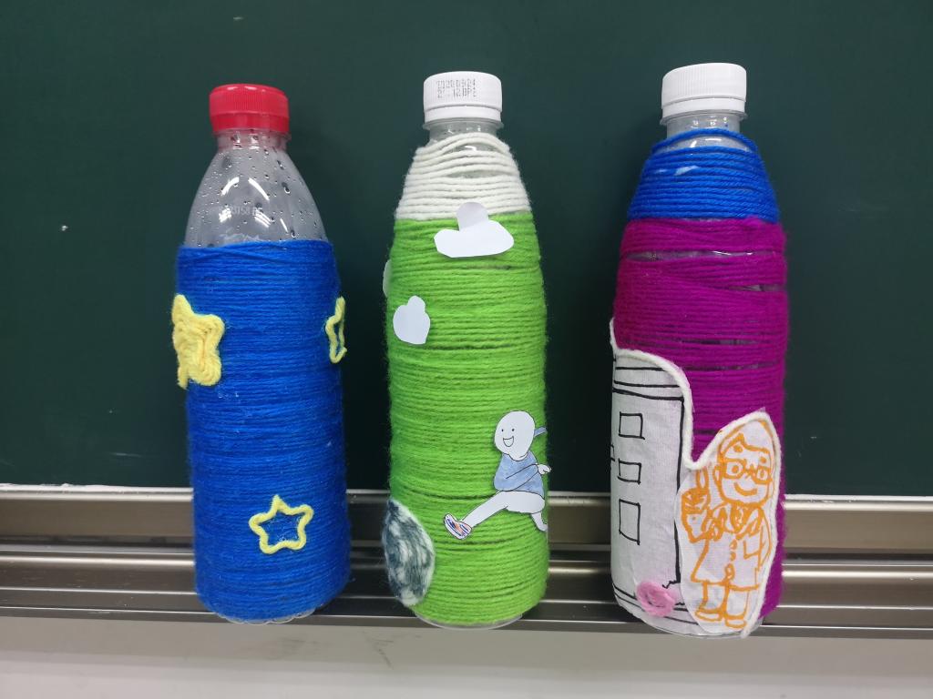 国际经贸学院青年志愿者协会的志愿者们走进南京市中央路小学,和四年级学生一起开展“‘俭’起梦想,勤入人心”趣味手工课堂。同学们将自己的梦想职业作为创意来源,将废弃塑料瓶和各色毛线组合,做成了一个个小玩具。一位男同学梦想成为足球运动员,于是他便将绿色毛线做成了一片迷你草地,黑色和白色毛线做成了足球;一位女同学则用粉色的毛线缠成了医院的模样,“我的梦想是成为一名医生。”在制作过程中,不少同学试图在塑料瓶身缠绕毛线却滑落,南财志愿者唐奕看到便上前分解步骤,一圈一圈地演示。唐奕表示:“面对一群朝气蓬勃的四年级的学生,教一次两次不会是很正常的。我希望他们能够在趣味性的手工制作过程中,找到变废为宝的乐趣,同时基本了解爱物节用的精神,教学过程让我很有成就感!”互动环节,在大学生志愿者的有序组织和开导下,同学们则分享了自己日常生活中减少浪费的小妙招,比如,出门自带水杯、吃饭时吃多少盛多少……同学们你一言我一语,为践行勤俭节约献策。