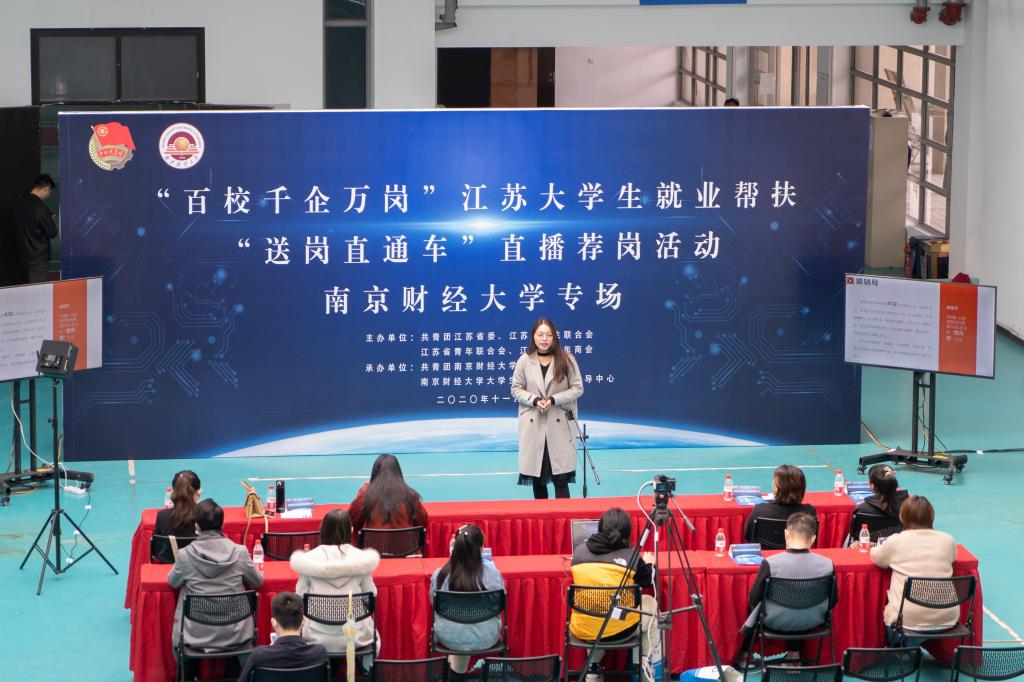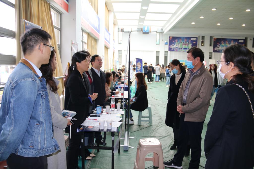 招聘会现场,校团委承办了“百校千企万岗”江苏大学生就业帮扶“送岗直通车”直播荐岗活动beat365英国官方网站专场,现场10余家用人单位通过线上直播、线下面试相结合的方式,为全省高校毕业生提供线上就业岗位推荐、就业观引导等就业服务,助力毕业生实现更高质量就业。值得一提的是,此次直播活动在线观看人数超1200人次,反响热烈。