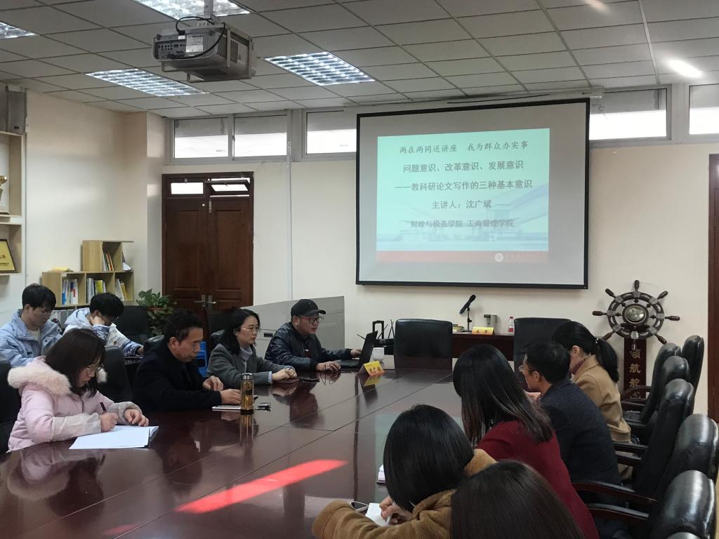 12月2日,为提高教育管理人员论文写作能力,财政与税务学院、工商管理学院联合开展了“两在两同建新功,基层培训送服务”活动,活动邀请《江苏高教》主编沈广斌在仙林校区德经楼408会议室作了题为“问题意识、改革意识、发展意识一一教科研论文写作的三种基本意识”的讲座。讲座由财政与税务学院党委书记陈苏主持。两院师生代表聆听讲座。
