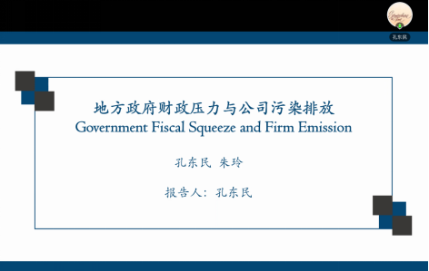 4月8日,应财政与税务学院、公共财政研究中心和中国财税治理研究院邀请,华中科技大学经济学院博士生导师、国家级人才计划入选者孔东民教授于线上作了题为“地方政府财政压力与公司污染排放”的学术讲座。学院部分教师、研究生参加讲座。