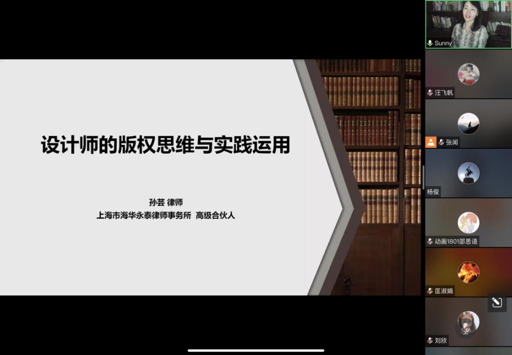 4月21日,应艺术设计学院邀请,上海市海华永泰律师事务所高级合伙人孙芸律师作了题为“设计师的版权思维与实践运用”的线上指导讲座。学院2018级全体毕业生和部分教师参加讲座。讲座由艺术设计学院院长丁蕾主持。