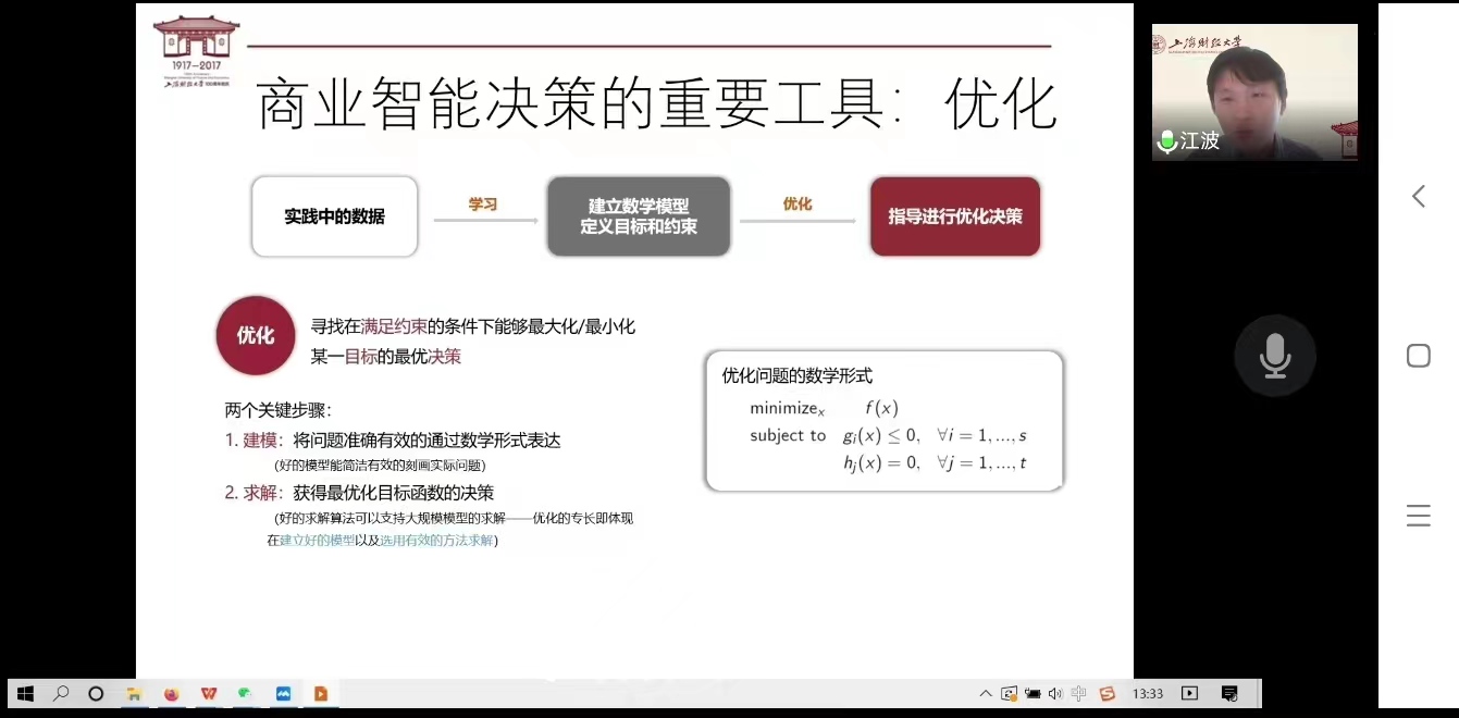 5月13日下午,应应用数学学院邀请,上海财经大学江波教授在线作了题为“收益管理中的优化模型与方法”的学术讲座。学院硕士研究生、部分教师参加讲座。