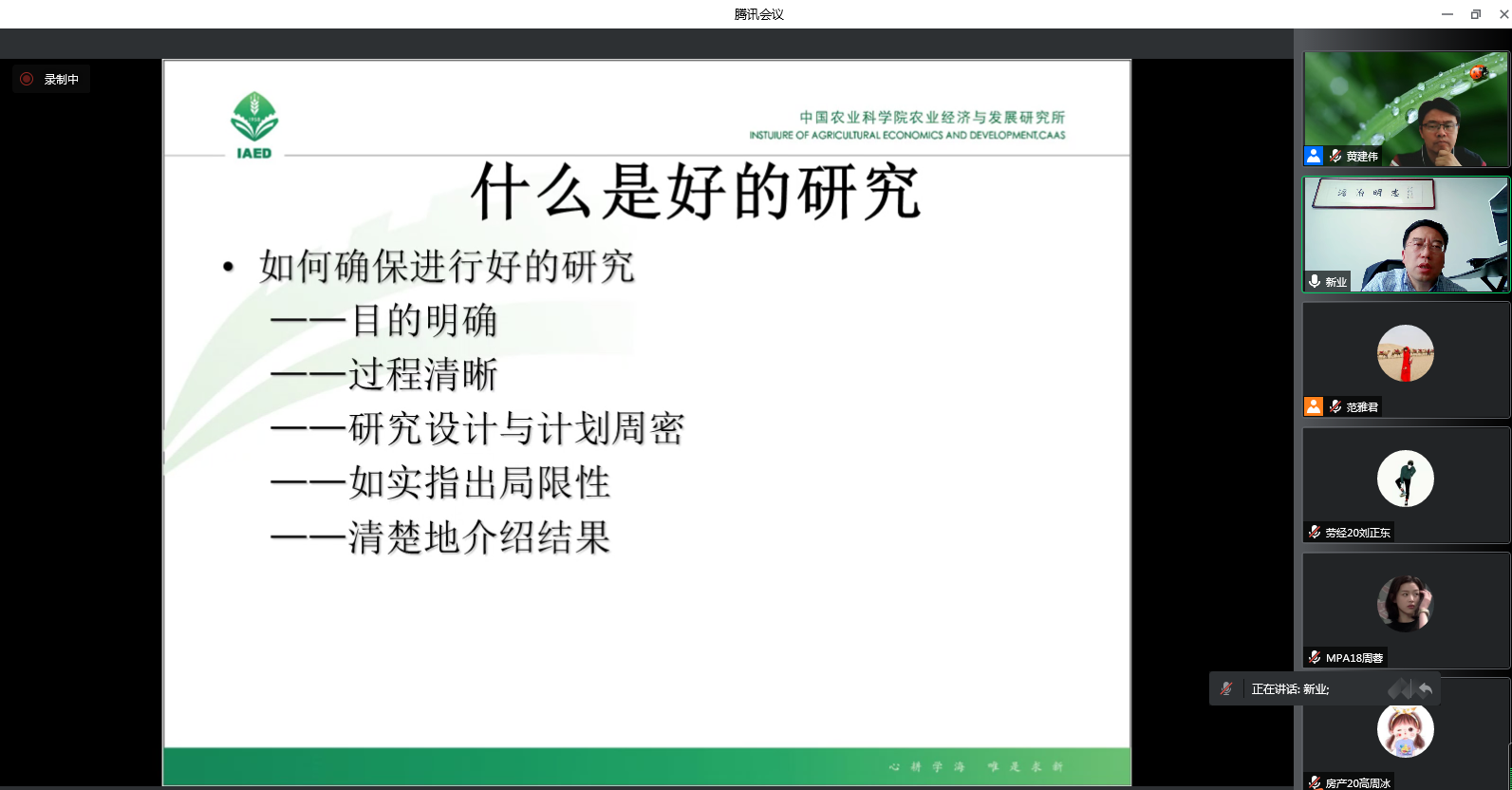 5月12日下午,应公共管理学院邀请,农业经济问题杂志社社长吕新业研究员在线作了题为“学术论文的选题、结构与规范”的学术报告。公共管理学院部分MPA师生、学术型研究生共120余人参加报告会。报告会由公共管理学院院长、MPA教育中心主任黄建伟教授主持。